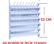 rahatca 60 adet ufak 30 adet büyük bobin konabilir. bobin pimleri araları 6 cm mesafelidir. ( yan yana bitişik 60 adet büyük bobinde sığıyor ) ürün 52×52 ebatındadır. duvara asma tipidir. ve asma icin yerleri mevcuttur.