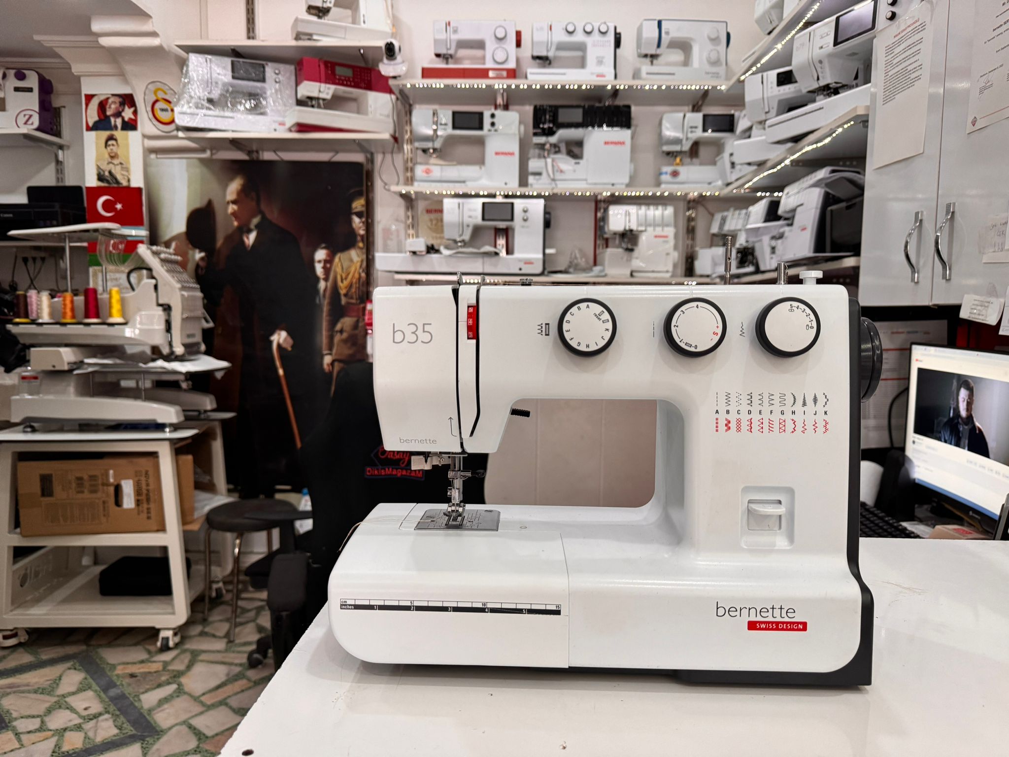 2.EL ÜRÜN RESMİ GARANTİLİ Bernette B35 Ev Tipi Dikiş Makinesi isviçre dizayn gerçek manada seri ve sessiz mekanik olarak sorunsuz çelik çavanoz sistemi sağlam kalın kumaşlar ve kaliteli dikiş zevki için tercih edilecek model. tek adımda ilik otomatik iplik takma serbest kol paça dikişi kumaş baskı sertlik ayarı led aydınlatma ayarlanabilir adım ve zigzag genişliği 23 farklı dikiş seçeneği çift iğne çalışabilme taşıma kolaylığı seri sarsıntısız çalışma sıfır adınıza faturalı 2 yıl garantili.