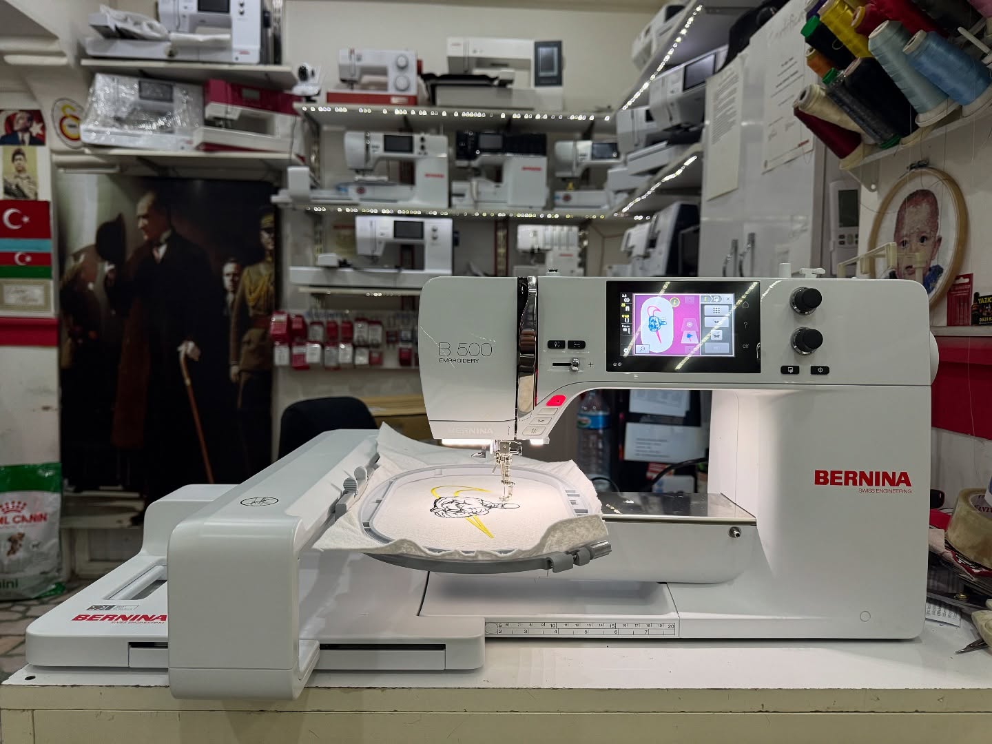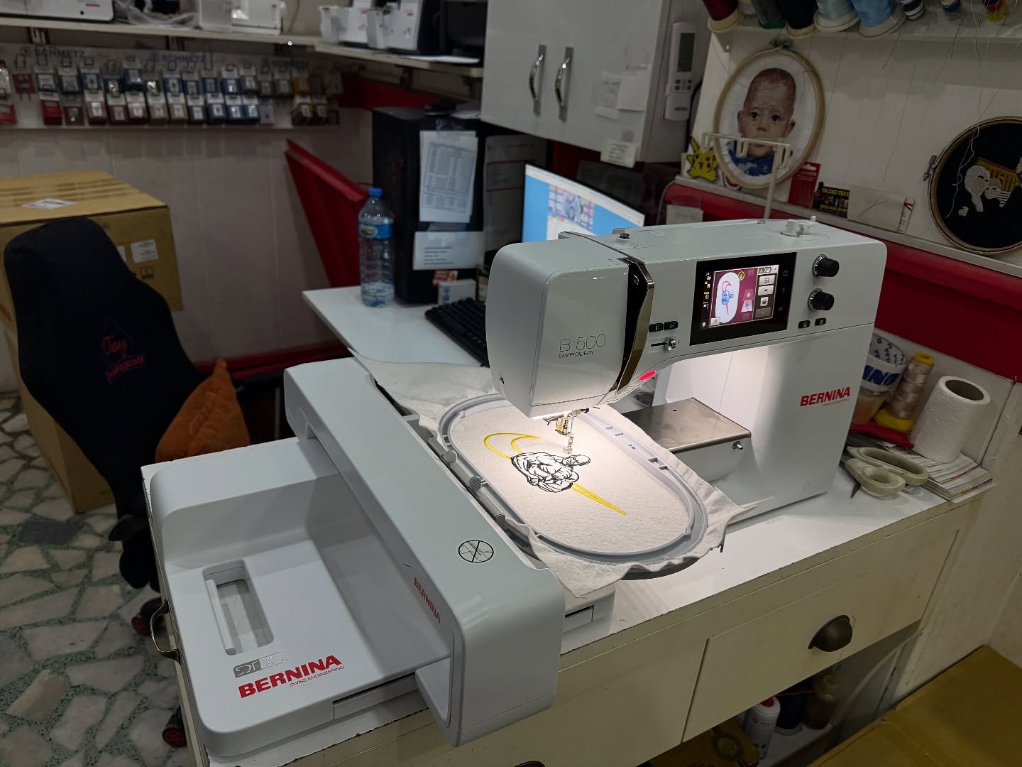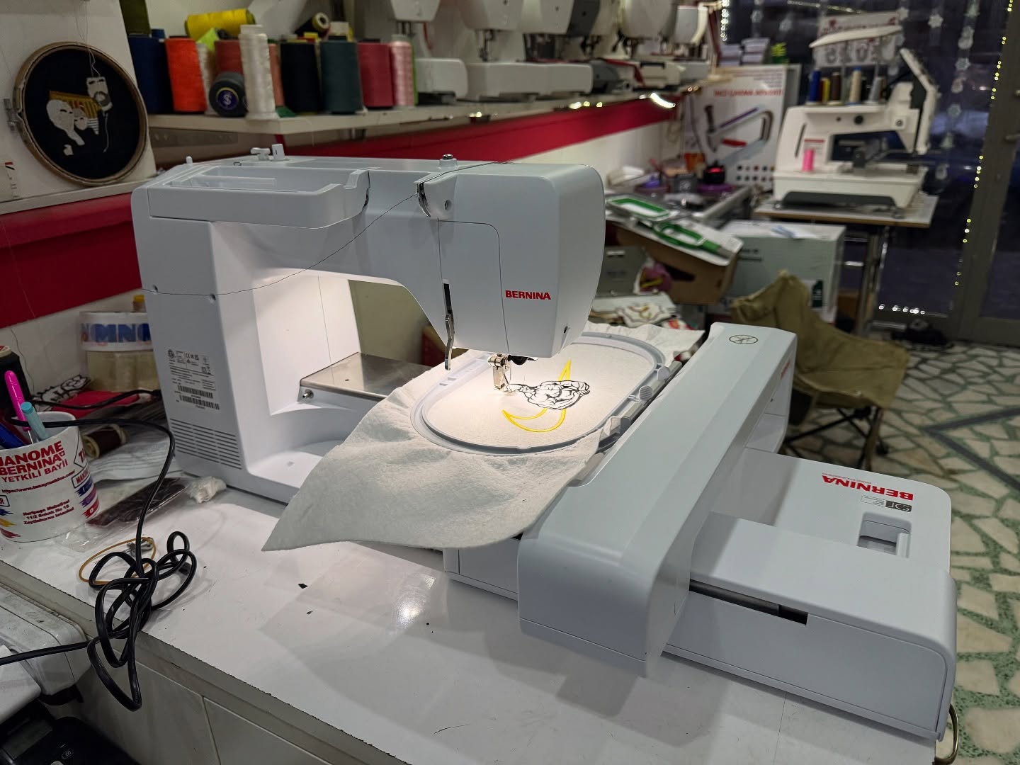 nakismakinesideseni.com üyeliği 700 bn desen dahil) Bernina B500 Nakış Makinesi (sadece Nakış) sanayi tipi çelik çavanoz sistemine sahip bernina isviçre kalitesi dikili kıyafet zıbın şapka gibi ürünlere nakış yapma imkanına sahip serbest kol dikiş bölümü ile rahat ve kaliteli nakışlar icin tercih edilebilir dahili kutu içeriği
