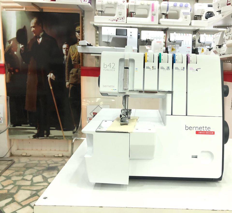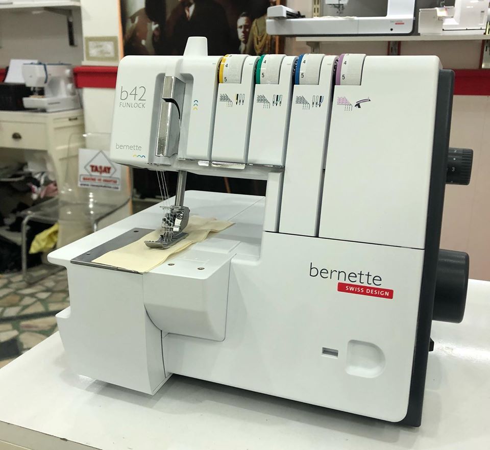 (720 FRANK FİYATI) KURA GÖRE DEĞİŞİR.Yetkili Bayii den Sıfır Ürün Bernina Bernette B42 4 İplik Reçme, 4 Değişik Dikiş düz zincir dikiş 3 iğne reçme dikişi 2 iğne dar reçme dikişi 2 iğne geniş reçme dikişi esnek kumaşlarda büzgü defransiyel ayarı ayarlanabilir dikiş adım ayarı ayak baskı sertlik ayarı renkli iplik yolları kolay lüpere iplik takma sistemi masa üstü portatif ev tipi reçme penye dikişleri için ideal atma çıtlamaya son adınıza faturalı 2 yıl garantili Tasay makine güvencesi ile , Renkli İplik Geçirme Yolları