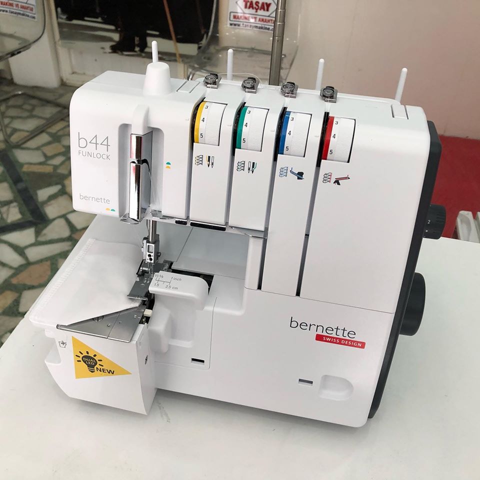 (655 FRANK FİYATI) KURA GÖRE DEĞİŞİR. Yetkili Bayi den Bernina Bernette B44 4 İplikli Ev Tipi Overlok Makinesi isviçre menşai kalitesi tasarım kumaş seçmez büzgü adım ayarları mükemmel bebe overloğu sıfır ürün yetkili bayiiden taşay makine güvencesi ile