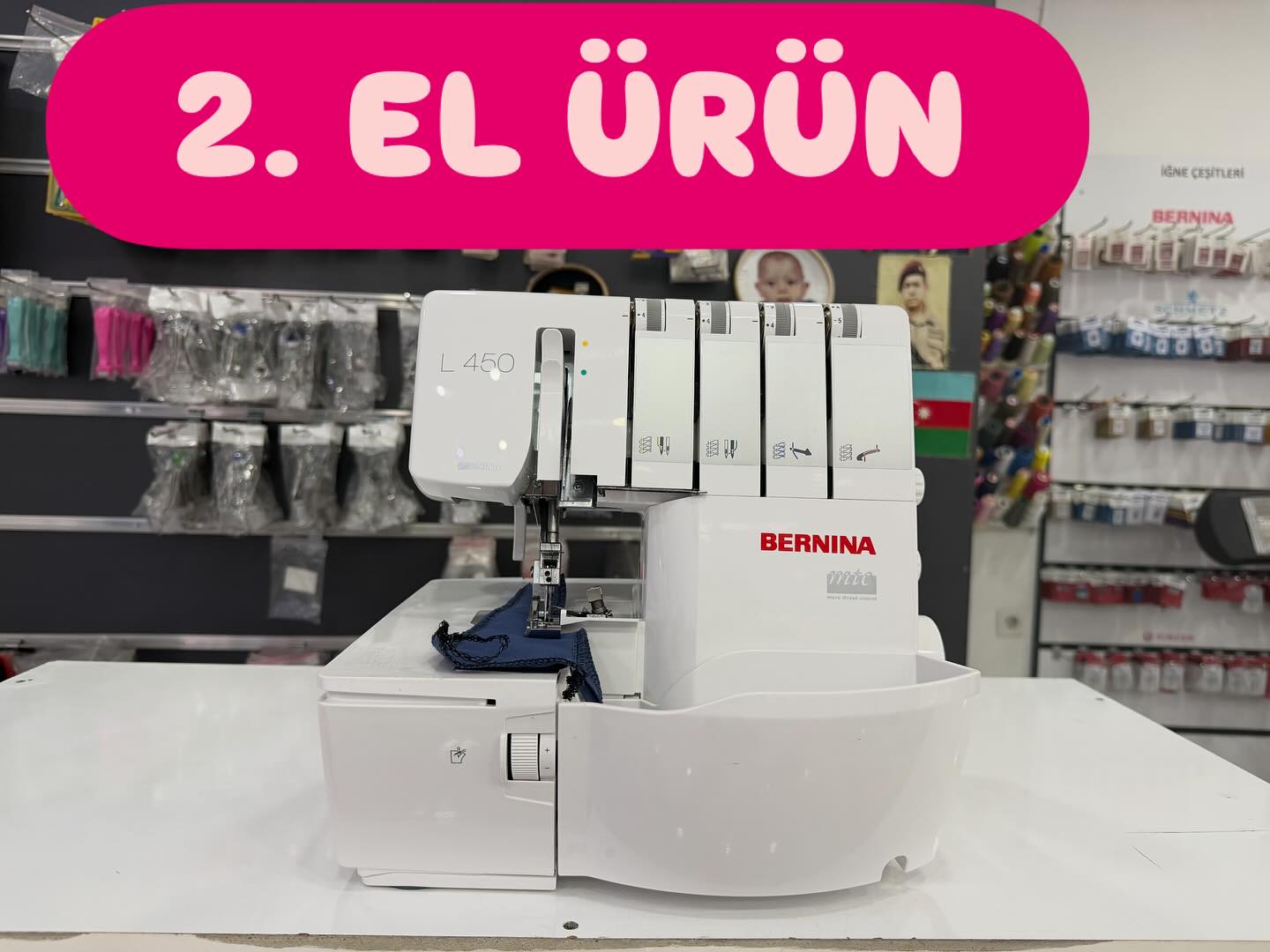 2. EL ÜRÜN bakımları yapılmış kutulu..Bernina L450 Overlok Makinesi 4 ve 3 iplik overlok yapabilme isviçre malı metal sağlam gövde seri sessiz çalışma 2mm den 9 mm enine kadar her kumaşı rahatlıkla dikebilme ayarlanabilir bıçak kesim mesafesi bıçak iptali kesmeden overlok dikişi kumaş baskı ayarı sayesinde her kumaşta rahat çekiş led aydınlatma fire kabı vantuzlu ayaklar sayesinde masaya yapışır sarsıntısız çalışma imkanı profesyonel manada bebe eşarp kenarı ince overlok dikişleri kot kaşe vb kalın kumaşlarda sorunsuz dikiş. adım ayarı esnek kumaş büzgü ayarı kolay iplik takma açılabilir ön hazne renkli iplik yolları dahili aksesuar gözü 2 3 4 iplik overlok dikişleri tasaymakine güvencesi ile youtube kullanım videosunu izleyebilirsiniz. #bernina #berninal450 #berninaoverlock #berninaserger #dikiş #dikişmakinesi #overlokmakinesi #overlok
