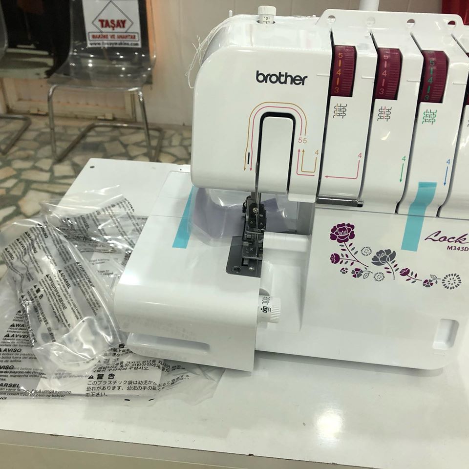 Sıfır Ürün Brother lock M343D 3 4 iplik overlok makinesi taiwan üretimi brother teknolojisi renkli iplik yolları sol lüper kolay iplik takma sistemi serbest kol paça dikişleri büzgü ayarı adım ayarı bıçak iptali ile kesmeden overlok yapabilme bebe overloğu dar kenar overloğu imkanı mükemmel dikiş kalitesi led aydınlatma seri sessiz masa üstü 2 yıl garantili tasay makine güvencesi ile