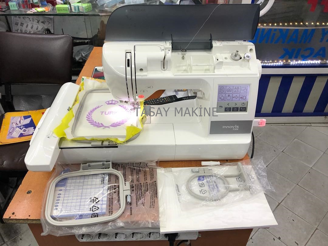 KREDİ-KARTI (Nakış Yazılımı Dahil) Brother 750E nakış makinesi nakış işleri için ideal yazı desen kendi tasarımlarınızı oluşturabilirsiniz 180×130 dahili kasnak 300×13 ekstra geniş kasnak ile nakış yapabilme dahili 6 farklı karakterde otomatik yazı alt üst iplik sensörü masura bittipinde otomatik ikaz tam otomatik iplik takma lcd panel desen renkleri vuruş sayıları ve süre gösterme ileri geri vuruşları alabilme ekstra büyük kasnak ve aksesuarları 30×13 hediyeli tasay makine güvencesi ile sıfır ayarında desen yazılımı dahil istediğiniz resmi logoyu şekli fotograftan nakışa çevirip işleyebilirsiniz makine kullanılmamış yurt dışından gelme sıfır kondisyon üründür.