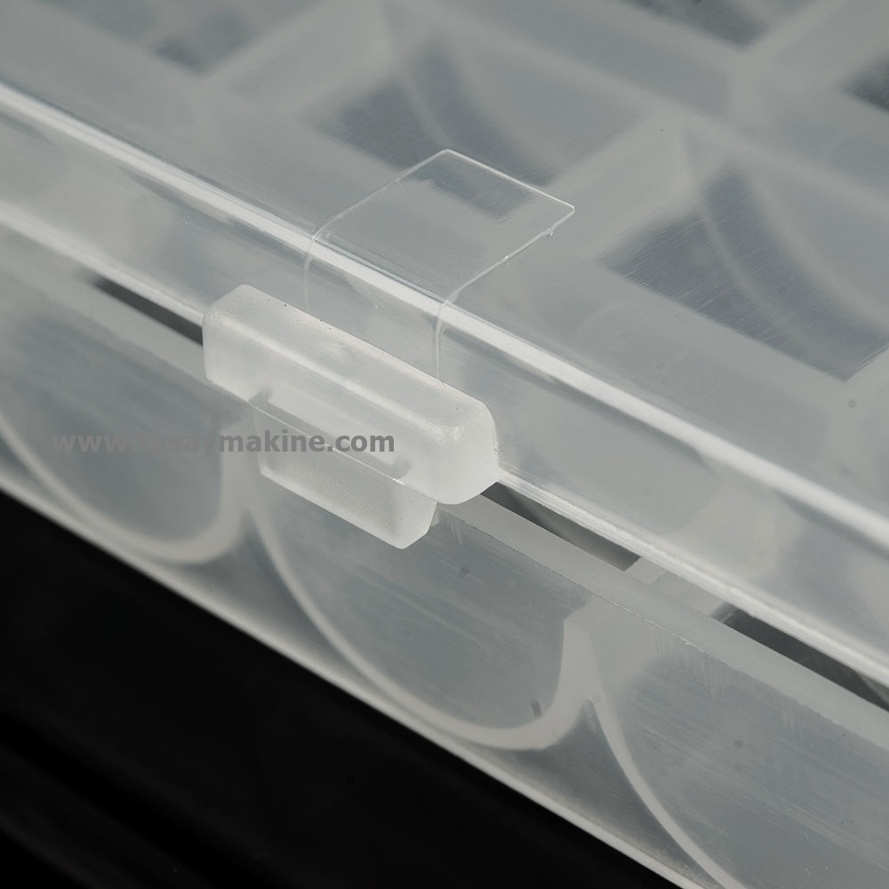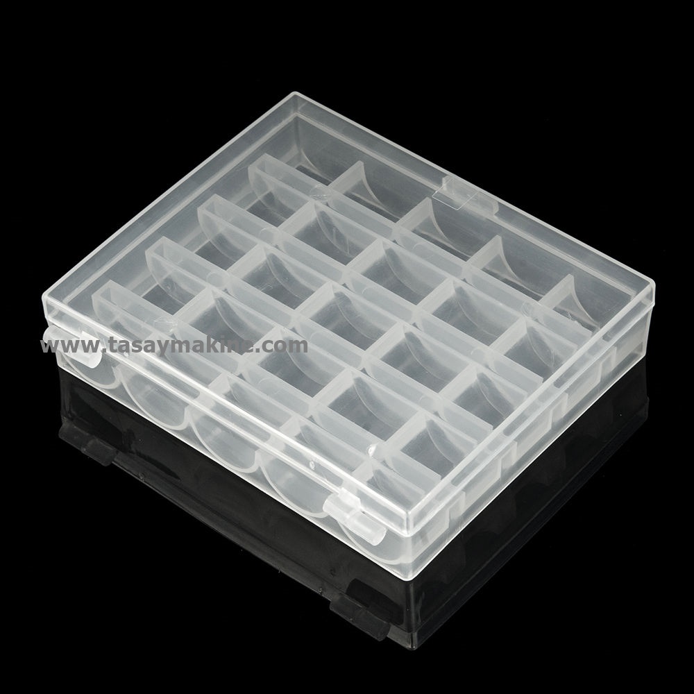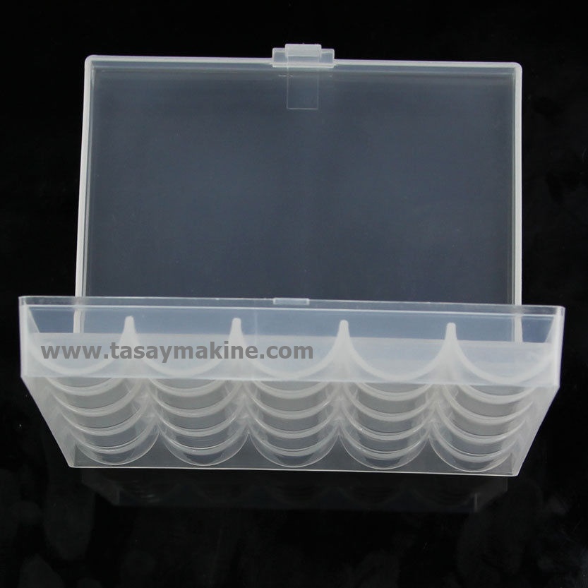 Dikiş Makinası Masura kutusu 25 adet masura için üretilmiş sağlam plastik kapaklı saklama kabı plastik masura kutusu bu kutu sayesinde masuralarınız ezilmeyecek kaybolmayacak dilerseniz masura içi boş dilerseniz 25 adet masura ile birlikte alabilirsiniz .rengarenk tip tip ipler çeşit çeşit dikişler için sürekli hazır konumda saklama kabı dikiş makinası masura saklama kutusu singer,zetina,janome,pfaff her çeşit makina masurası için ideal