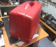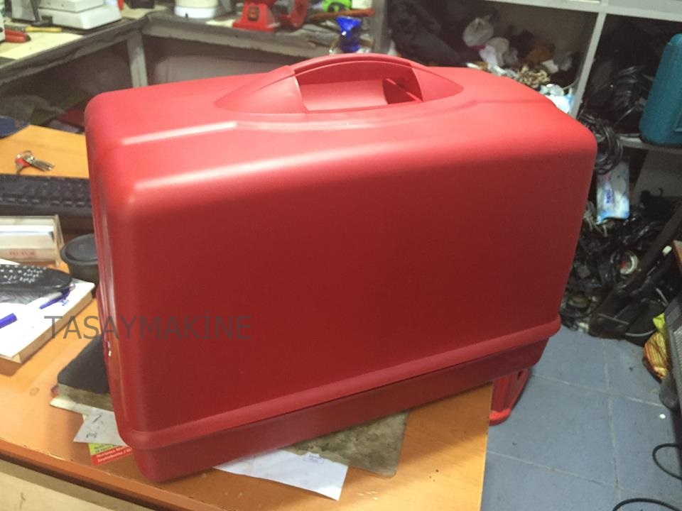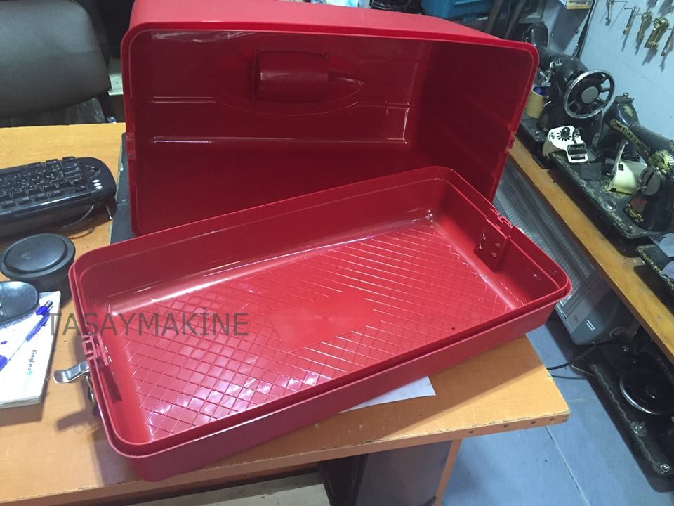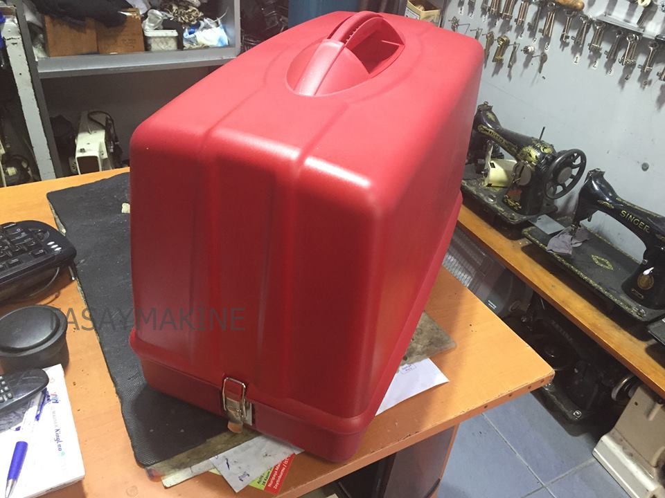 Kırmızı renk Dikiş Makinası Plastik Taşıma Çantası plastik malzemeden dayanıklı ve esnek yapıda yeni nesil dikiş makinaları saklama kabı şık ve estetik resimlerde görüldüğü gibi içinde menteşe bulunmamakta saklama kabı gibi düşünebilirsiniz.