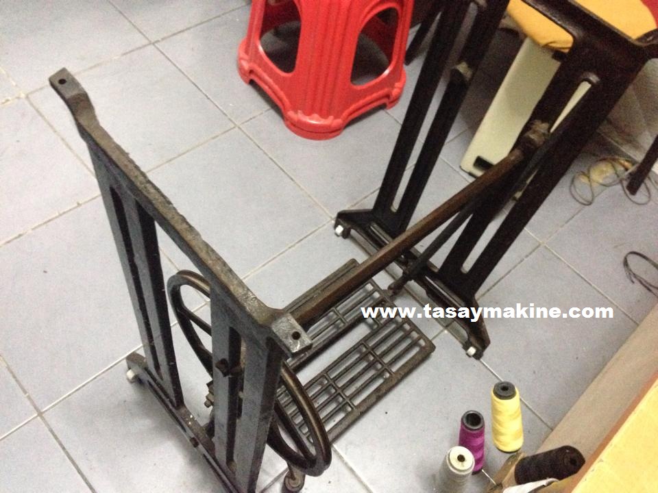 Eski Dikiş Makinası Ayağı sehpa için kullanılabilir üst tahtası deforme olduğu için sökülmüştür farklı renklere boyanıp üstü cam sehpa şeklinde dekoratif olarak kullanılabilir. oldukça eskidir takribi 50 yıllık pedalda marka vs yoktur o açıdan daha uygundur. ancak sinka modelidir.