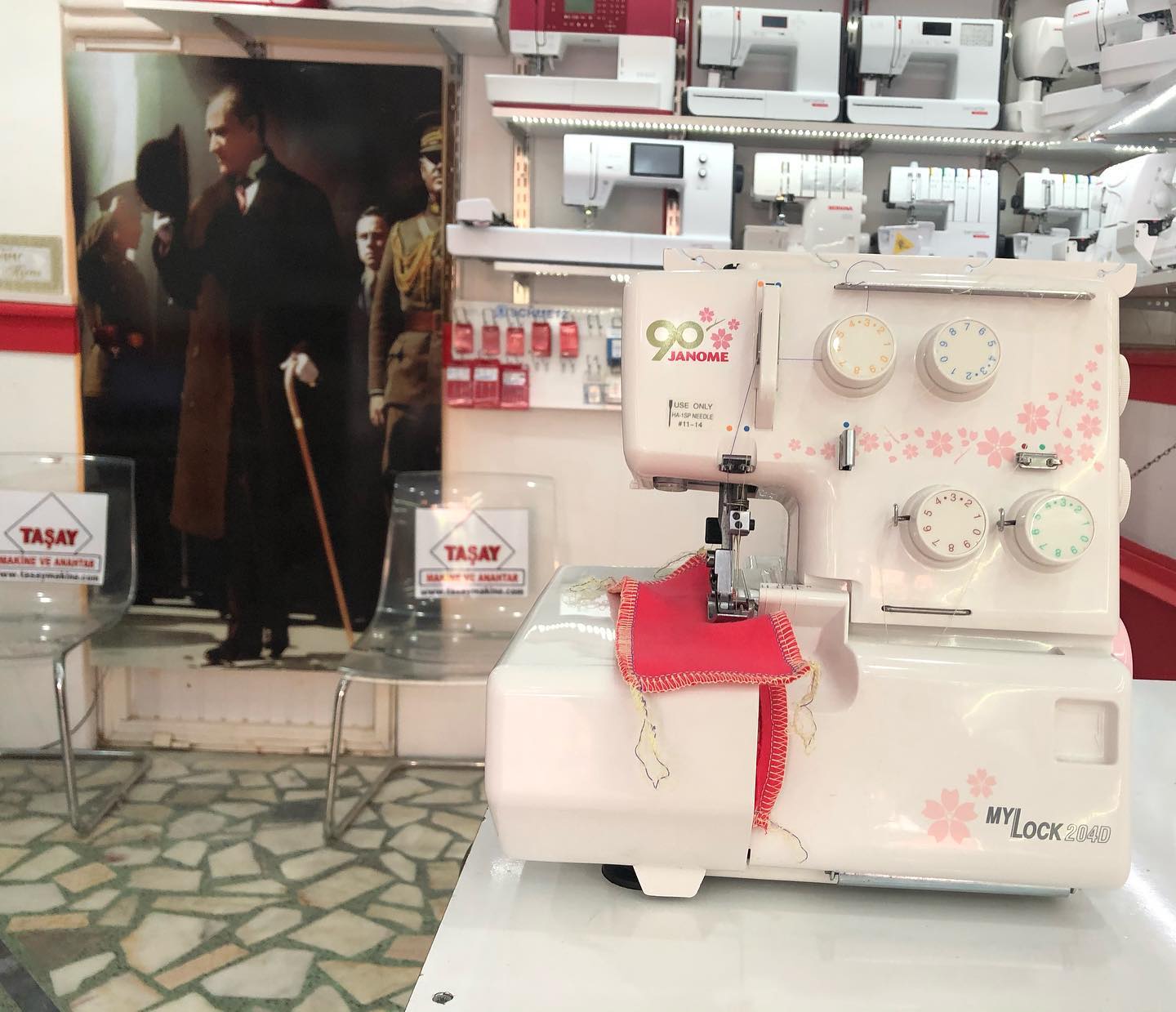 Janome 204d 4 iplik overlok makinesi taiwan üretimi seri sessiz 3 ip 4 ip çalışabilme ayarlanabilir adım aralığı esnek kumaşlar için büzgü ayarı güçlü defransiyel hee türlü kumaşta rahat çekiş ve dikiş olanağı ayarlanabilir kumaş baskı sertliği dar kenar overloğu tülbent vb ince kenar overloğu yapabilme iptal edilebilir bıçak ile kesmeden overlok yapabilme sıfır ayarında bakımları yapıldı taşay makine güvencesi ile 1 yıl tarafımızdan garantili.orjinal kutusu ile 3 ve 4 iplikle çalışabilen overlok makinesi * Ayarlanabilen kesim genişliği * Büzgü ve esnemeyi önleyen özel tasarlanmış diferansiyel dişli sistemi * Diferansiyel dişli oranı : 0.5 – 2.2 mm * Farklı renklerle işaretlenmiş iplik takma tablosu ile kolay ve çabuk iplik takma * Farklı renklerde tasarlanmış numaralı iplik tansiyonları * Üst bıçak tek bir düğmeye basarak devre dışı bırakılabilinir. * Dikiş uzunluğu : 1-5 mm * Dikiş genişliği : 3.5 mm (Normal), 5.7 mm (Geniş), 2.0 mm (Dar) * Kesme genişlik ayarı : 3.1 mm – 5.1 mm * Kolay ayak takma ve çıkarma * Elektronik hız ayarlı * Dakikada 1300 devir * Her tür ve kalınlıktaki kumaşlarda mükemmel overlok dikişi
