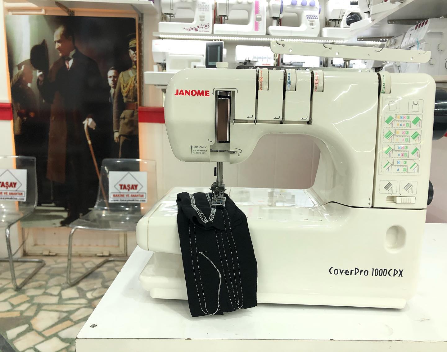 Janome Coverpro 1000cpx sıfır ayarında ev tipi masaüstü reçme dikişi 3 2 1 iğne dikişi spor dikişler 6 mm genişliğinde 2 li reçme dikişi her türlü kumaşı esnek kalın ince ayırt etmeden dikebilme serii ve sessiz hız ayarlı kumaş baskı gerginliğini ayarlıyabilme renkli iplik yolları kolay ipli takma geniş çalışma alanı güçlü defransiyel besleme serbest kol ve paça dikişi ayarlanabilir adım ayarı evlerde iş yerlerinde terzilerde hazır giyim modelistler için profesyonel çözüm orjinal taiwan malı janome reçme makinası videolu anlatımı izleyebilirsiniz bakımları yapılmış 2. el üründür 3 iğneli reçme dikişi 6 mm