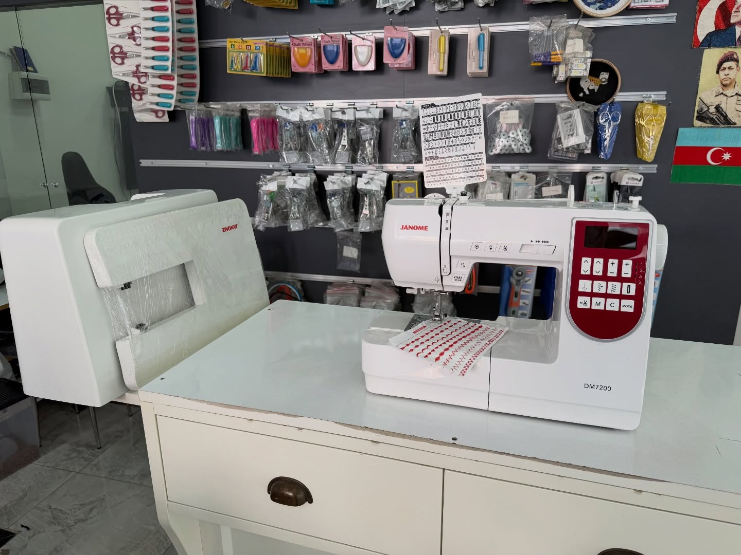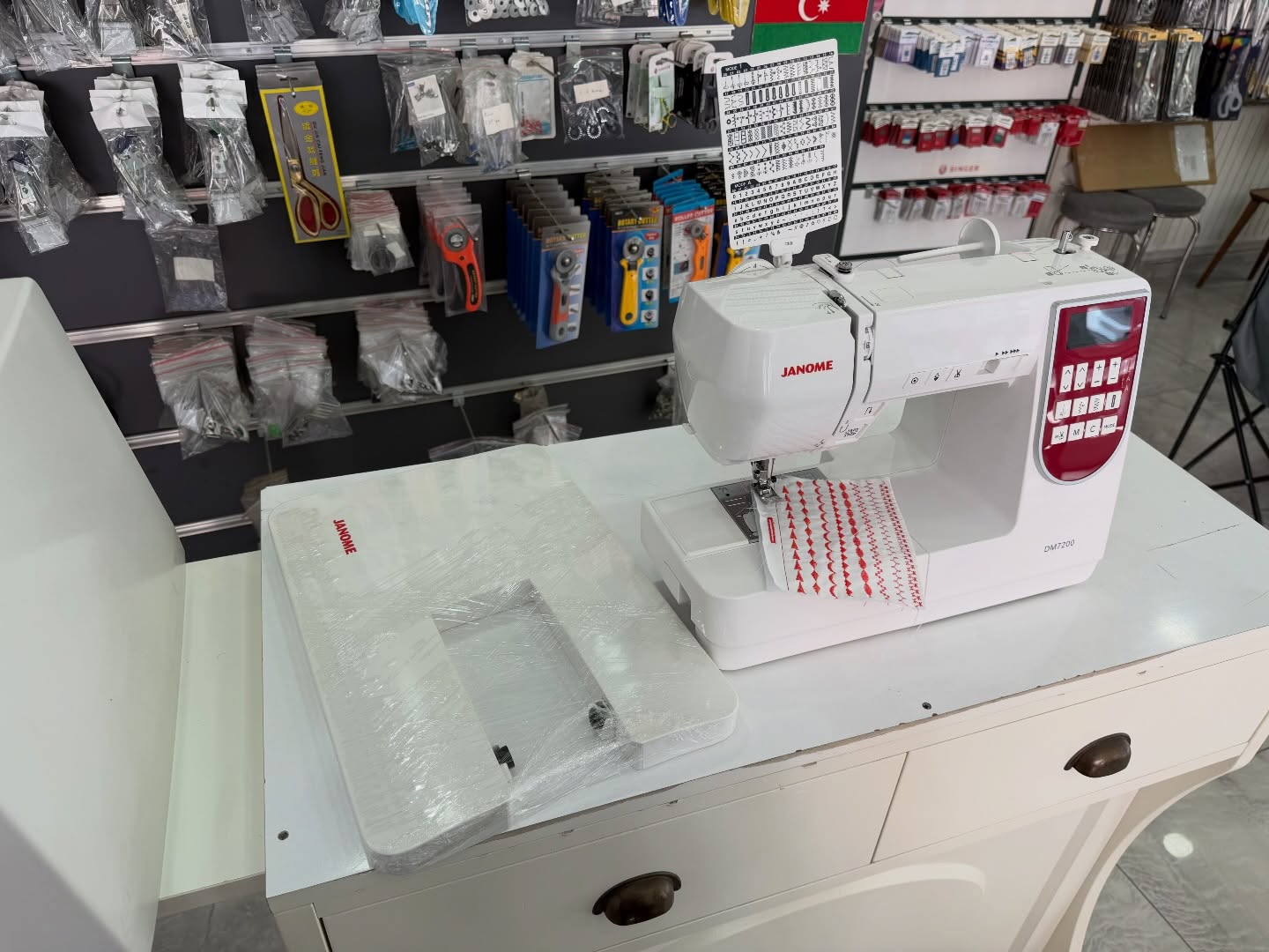 Janome DC7200 Yetkili bayiden bakımları yapılmış… 7 mm genişliğinde 200 farklı dikiş ve piko 2 farklı alfabe desen kombini ile farklı motifler üretebilme kademeli hız ayarı pedalsız çalışma start stop iplik kesme iğne pozisyonlama alağı yukarı otomatik iplik kesme tek tuş ile desen sonlama teğel dikişi dahili uzatma tablası geniş çalışma alanı otomatik ilik