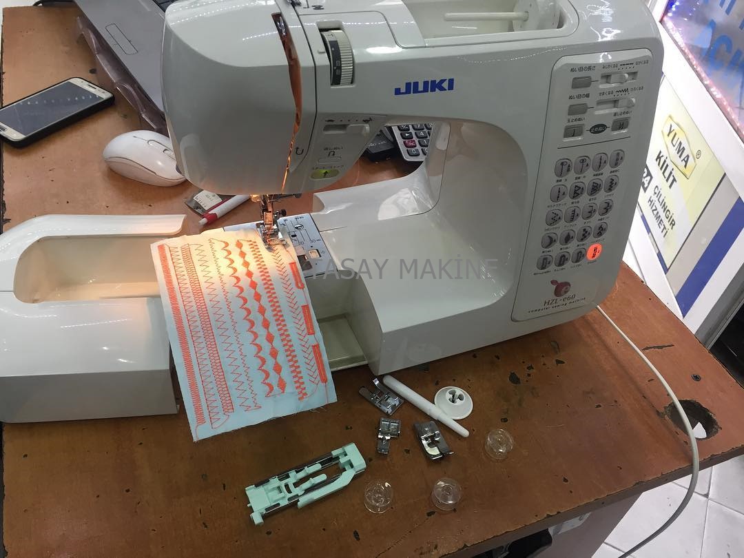 Juki hzl-E60 elektronik dikiş nakış piko makinesi orjinal japon üretimi juki 7 mm zigzag genişliği tam devir çavanoz sistemi seri ve sessiz çalışma imkanı sarsıntı vs yapmaz otomatik iplik takma tek adımda 4 farklı istenen genişlikte ilik açabilme 3 kademe hız ayarı start stop pedalsız çalışma dişli düşürme ile serbest nakış kapitone işleri yapabilme çıkarılabilir opsiyonel tüm ayaklarla çalışabilmekte çift iğne ve nervür dikişleri ön kısım ile serbest kol ve paça dikişleri 20 farklı şekilde dikiş ve piko yapabilme overlok dikişi ileri geri penye esnek kumaş dikişi kot kalın ince esnek her kumaşı sorunsuz dikebilme dikişe başlarken ileri geri otomatik adım ayarı. Tasay makine güvencesi ile bakımları yapılmış fırsat ürünü. Orjinal kalite.