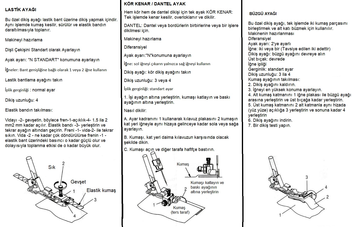 Opsiyonel dikiş ayak seti. bernette b44 , b48, pfaff 2.5 hobbylock , pfaff Coverlock 3.0 , 4.0 overlok ile uyumludur. görsellerde ayak işlevleri kullanım şekilleri yazmakta kılavuz kağıt olarak ürünle birlikte gönderilmektedir. türkçe kullanım şekli anlatılmakta