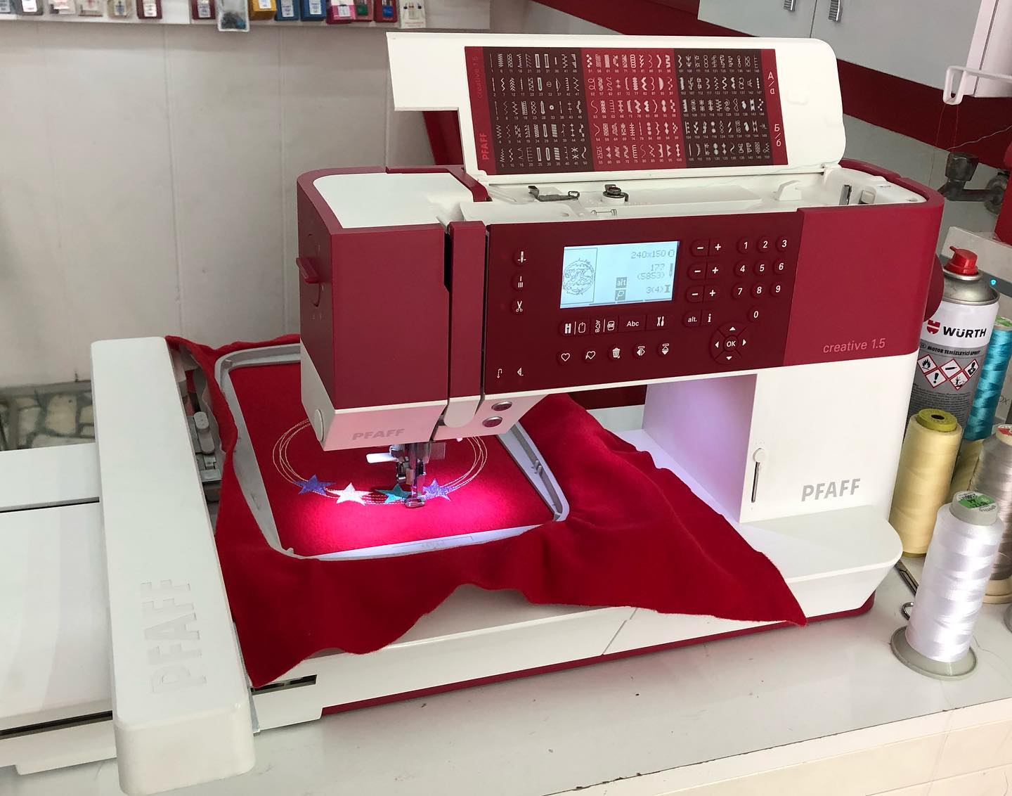 (Nakış Programı & 130 bin desen ve nakismakinesideseni.com üyeliği dahil. ) Pfaff creative 1.5 24×15 cm genişliğinde nakış kasnağı istenen fontta yazı yazabilme font ekleme resmi nakışa çevirip işletebilme kolaylığı sağlayan program ile full bakımlı tarafımızdan garantili boş makine ile kıyaslamayınız. Full fonksiyon kullanım imkanı sunuyoruz makinalarımızda