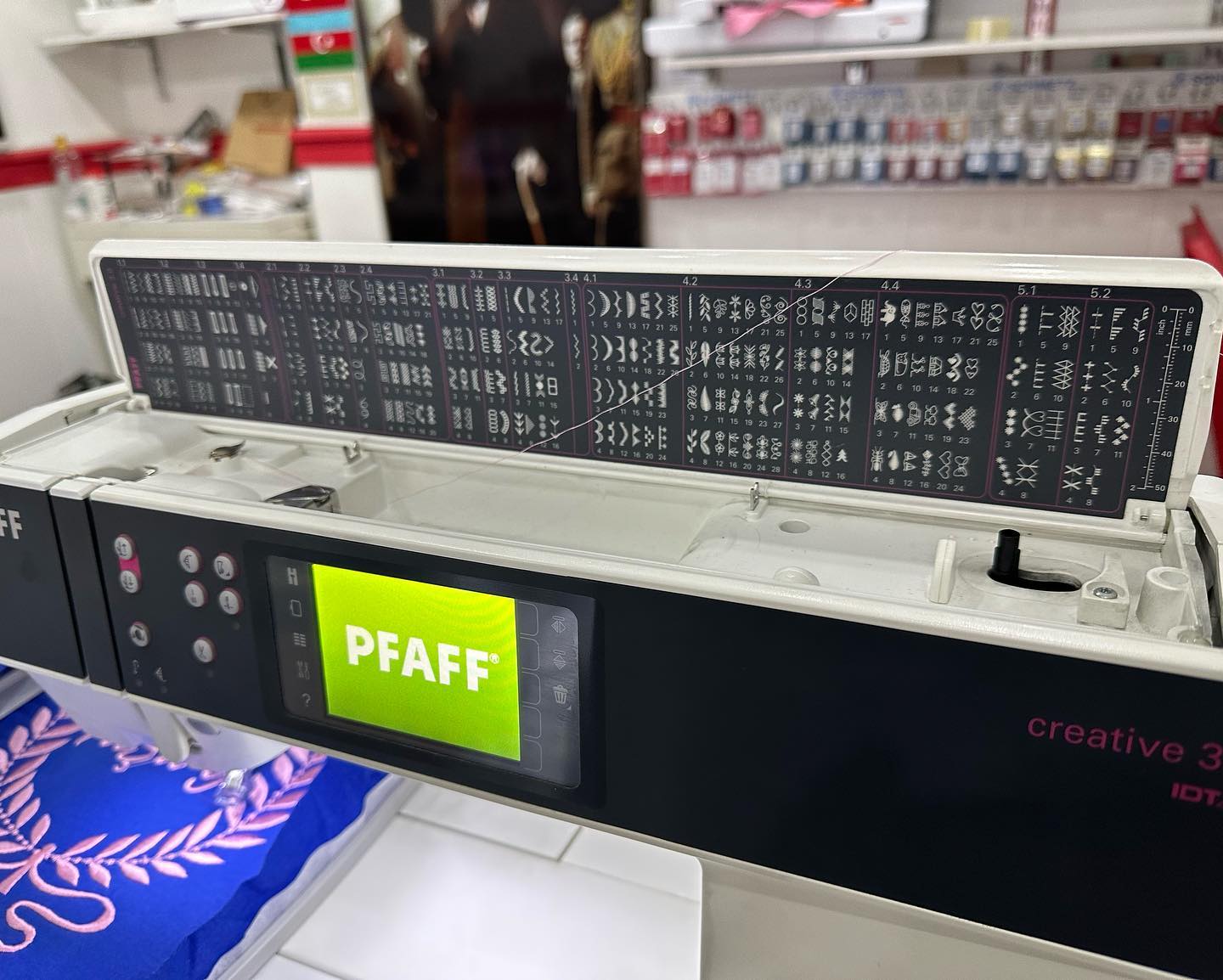 Nakış yazılımı + 700 bin desen Nakismakinesideseni.com üyeliği dahil) Pfaff Creative 3.0 bilgisayarlı nakış piko makinesi 26×20 kasnaklı ful aksesuarlı bakımları yapılmış sorunsuz geniş kasnak nakışı aynalama ve desen uzatma kombinler ile binlerce piko dikiş seçeneği 9 mm genişliğinde zigzag yapabilme