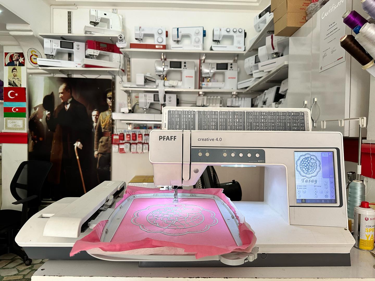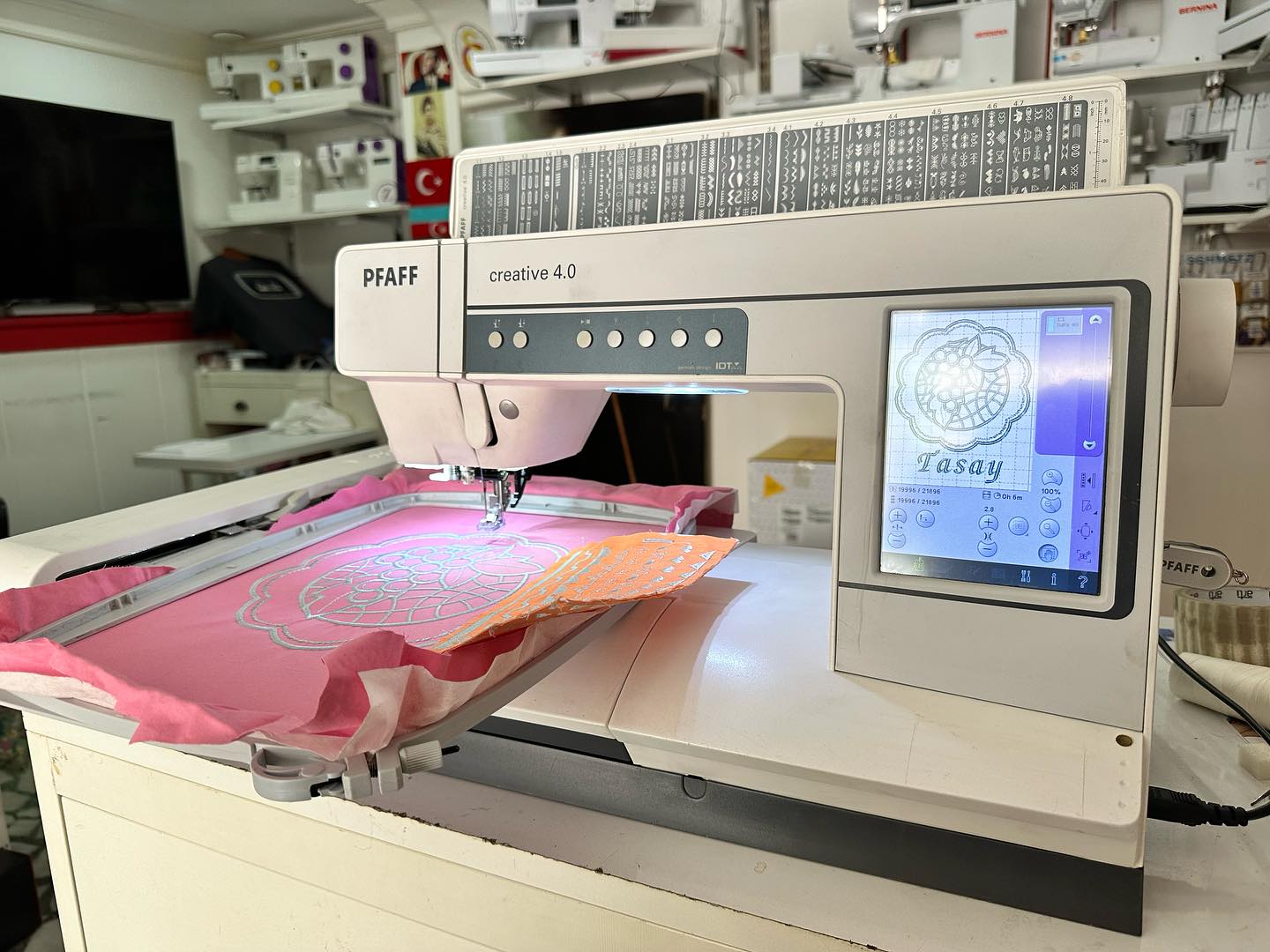 2. EL Ürün. nakış yazılımı & 700.000 desen ve Nakismakinesideseni.com Üyeliği Dahil) Pfaff creative 4.0 Dikiş Nakış Piko Makinesi 26×20 kasnak genişliğine sahip dikişten nakışa nakıştan dikişe tek tuşla geçme dokunmatik geniş ekran desen ekleme döndürme büyütme desen kombini 9mm piko genişliği 300 farklı piko deseni desen uzatma aynalama döndürme otomatik iplik takma otomatik iplik kesme pedallı ve pedalsız çalışma imkanı bakımları yapılmış 700 spm hızında antika ajur çift iğne çalışmaya uygun