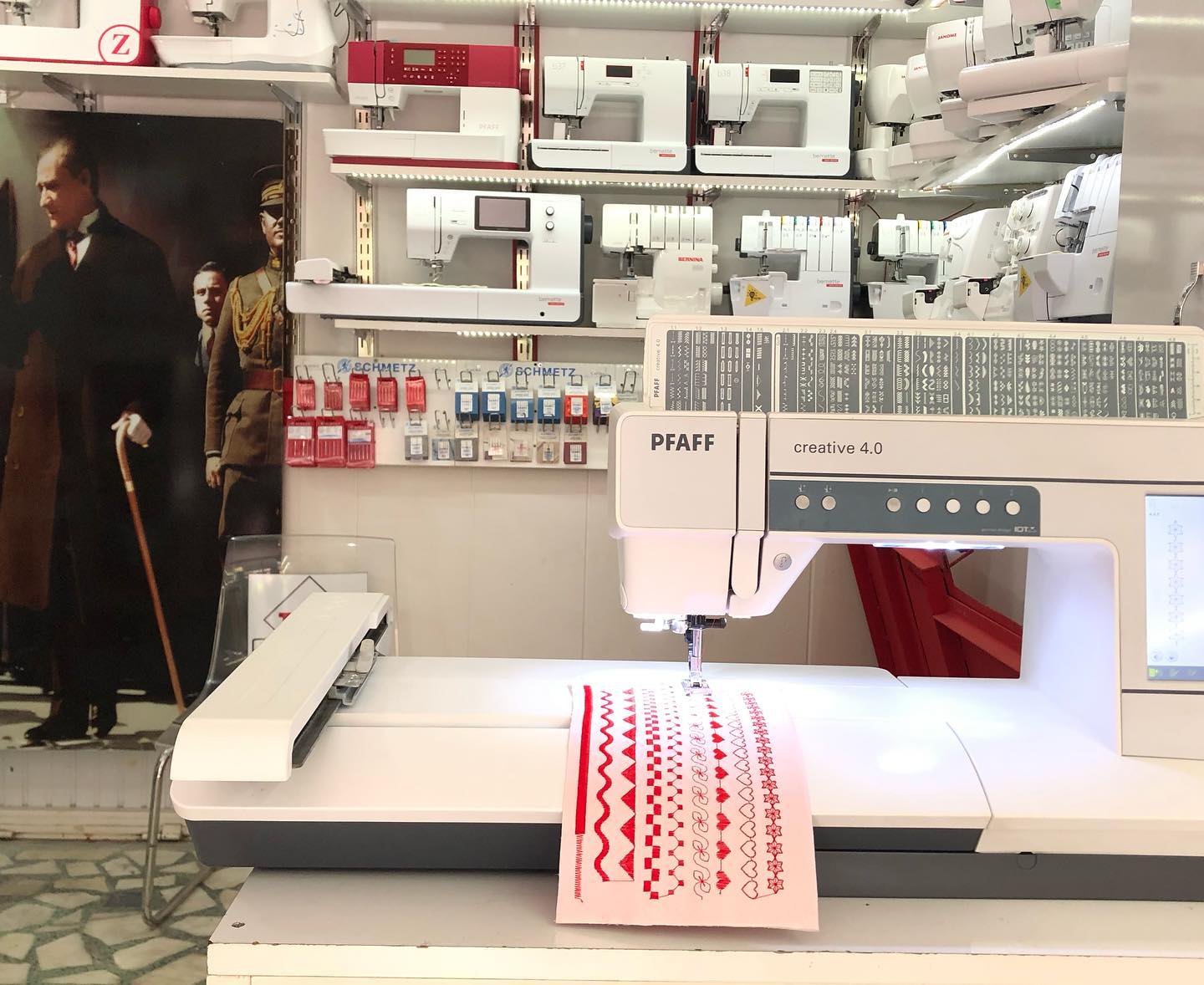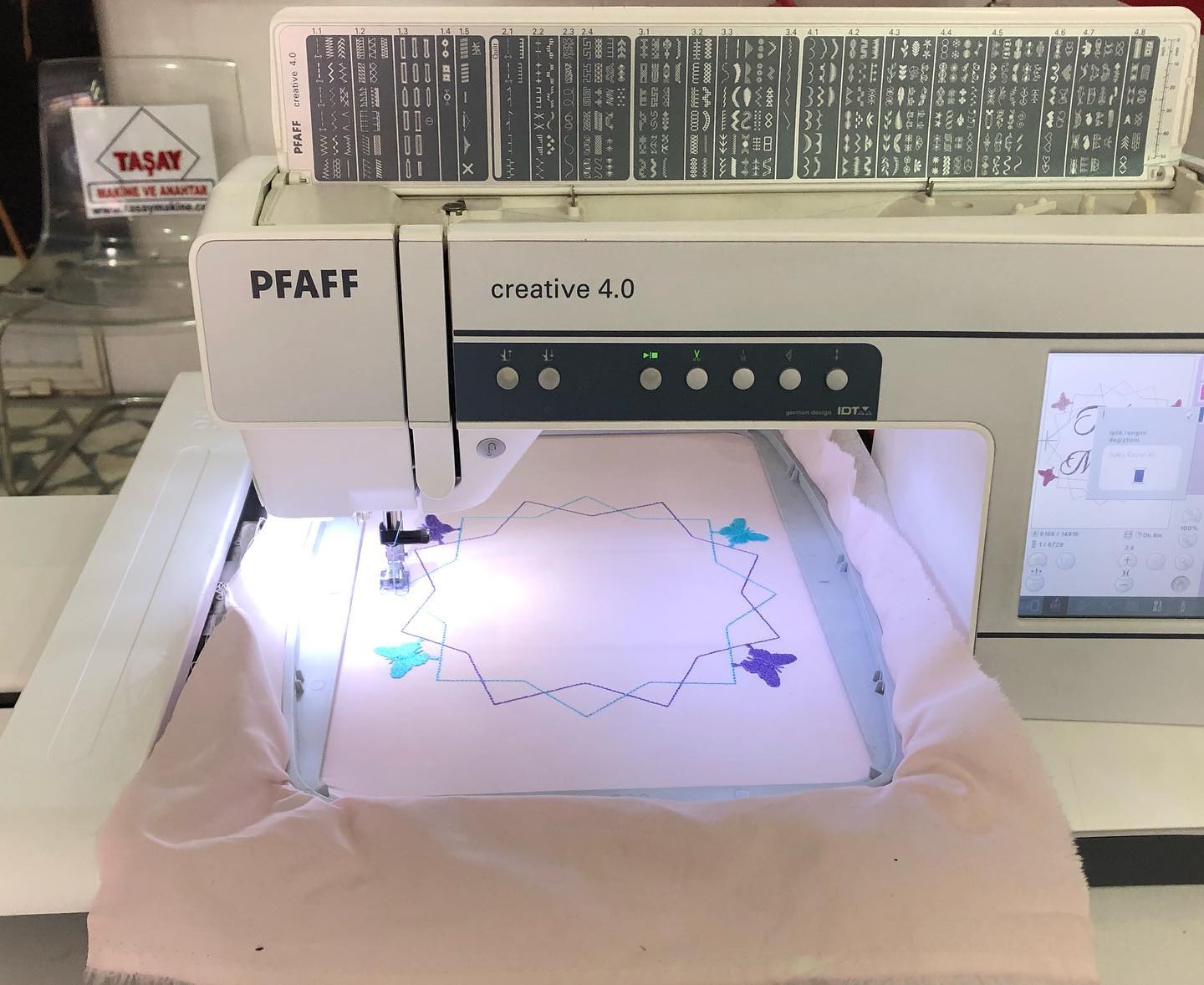 ( nakış yazılımı & 130.000 desen ve Nakismakinesideseni.com Üyeliği Dahil) Pfaff creative 4.0 Dikiş Nakış Piko Makinesi 26×20 kasnak genişliğine sahip dikişten nakışa nakıştan dikişe tek tuşla geçme dokunmatik geniş ekran desen ekleme döndürme büyütme desen kombini 9mm piko genişliği 300 farklı piko deseni desen uzatma aynalama döndürme otomatik iplik takma otomatik iplik kesme pedallı ve pedalsız çalışma imkanı bakımları yapılmış 700 spm hızında antika ajur çift iğne çalışmaya uygun