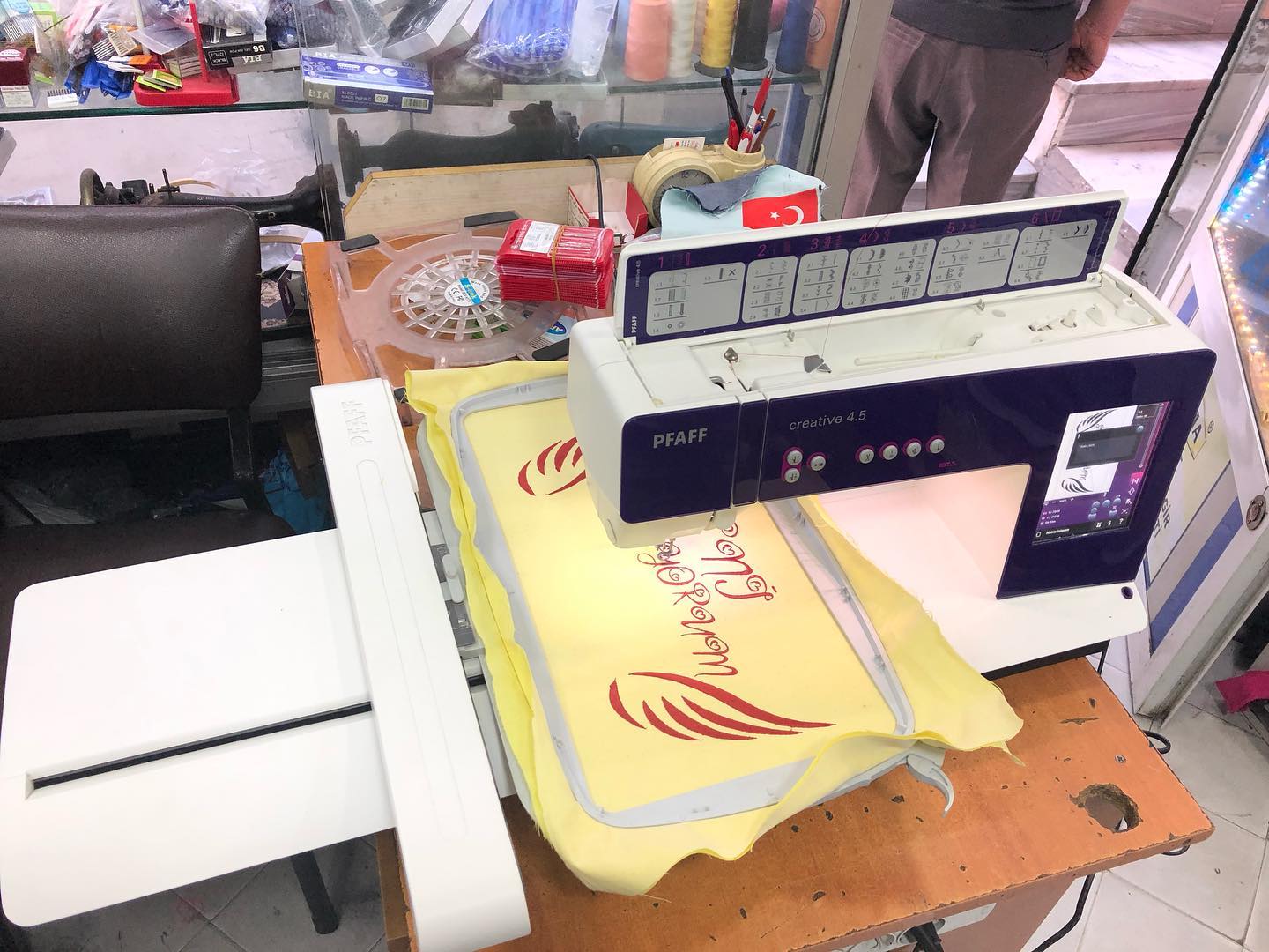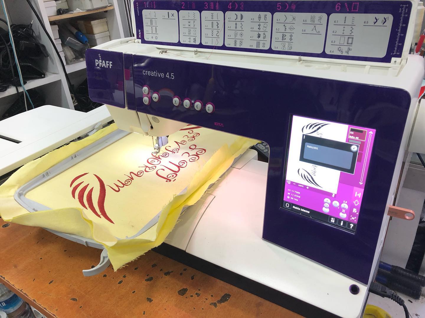 (Nakış yazılımı+55 bin desen dahil) Pfaff Creative 4.5 Nakış Piko Makinesi 36×35 cm maxsimum kasnak dahili 3 farklı kasnak desen hafızası 9mm piko 48mm süsleme dikişi ful elektranik bilgisayarlı 2019 9, aya kadagarantili sıfır kondisyonda tertemiz ful aparat ve aksessuarlı Renkli ve yüksek çözünürlüklü dokunmatik ekran