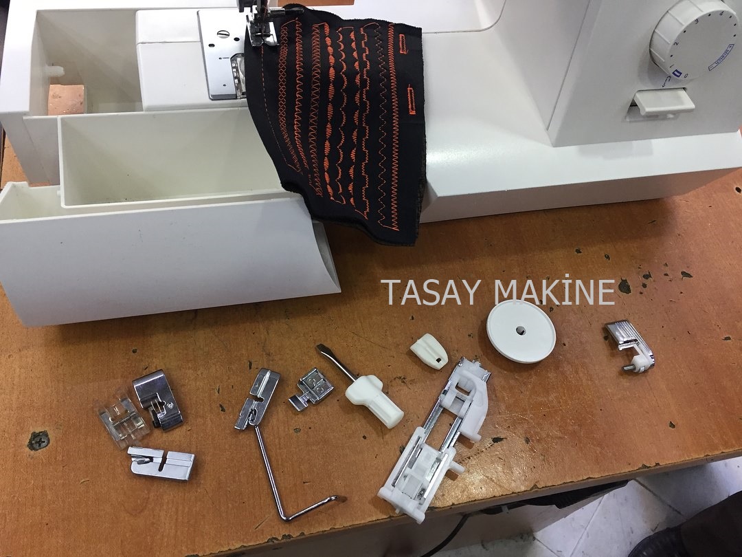 Hemen Dikişe başlamanız için, ZZ ayağı, kör dikiş ayağı, fermuar ayağı, otomatik ilik ayağı, overlock ayağı, Standart ilik ayağı, masurlar, ve iğneler vb.