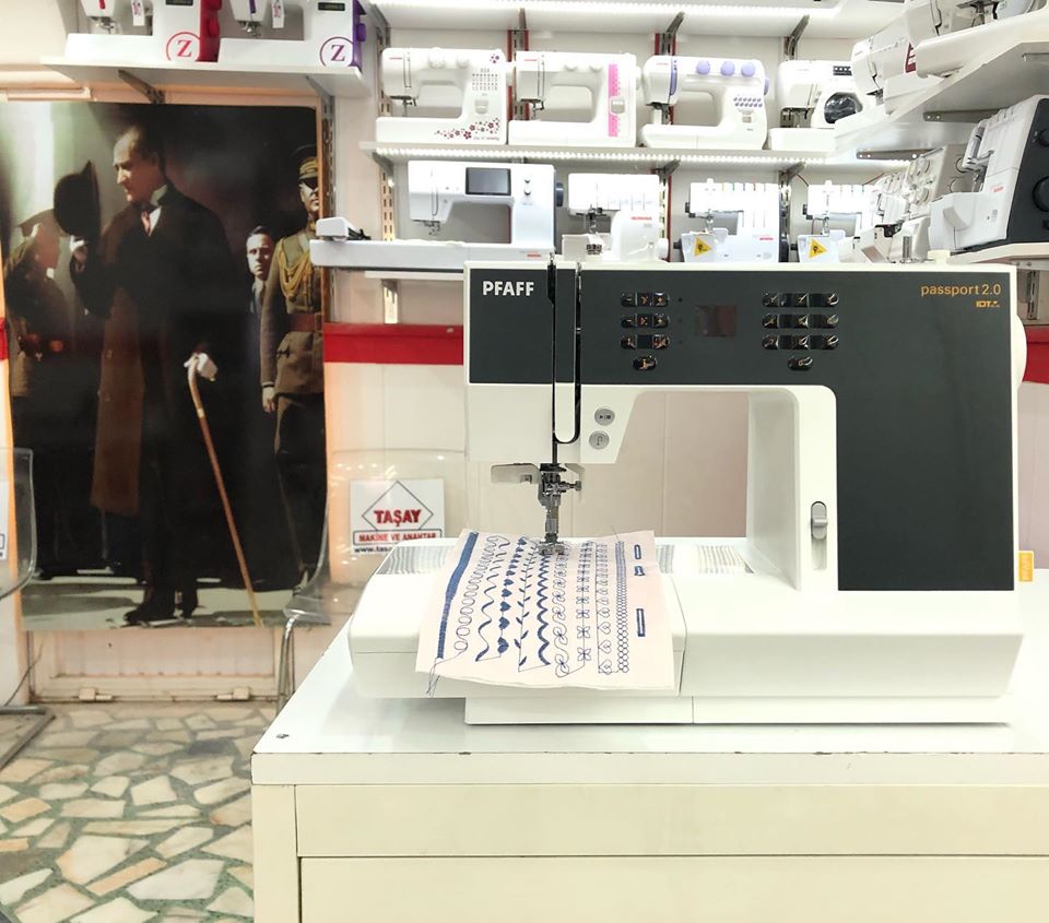 Pfaff Passport 2.0 Dikiş Nakış Piko Makinesi sıfır kondisyon taşıma çantası aksesuarları seri sessiz otomatik ilil iplik takma hız ayarı start stop pedalsız çalışma led aydınlatma çift iğne nervür ve overlok dikişi dişli düşürme serbest nakış kapitpne imkanı 70 farklı dikiş deseni tasay makine güvencesi ile
