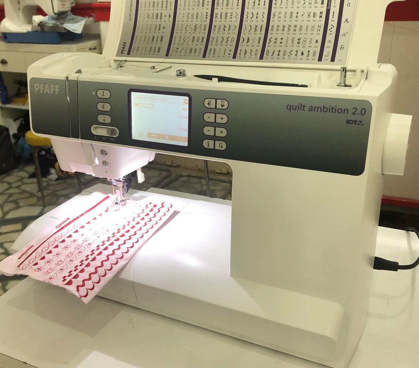 PFAFF QUILT AMBITION 2.0 aynalama ve desen kombini hariç 201 desen 4 farklı sitilde yazı yazma desenleri sağdan sola yukardan aşağı aynalama desen uzatma idt sistemi desen sonlama iğne pozisyonlama tam devir mekik sistemi kolay masura sarma türkçe menü dokunmatik ekran led aydınlatma tek adımda ilik otomatik iplik takma özelliği çift iğne ile çalışma nervür reçme basit overlok dikişleri 2. el kutusunda köpükleri ile birlikte bakımı yapılmış tarafımızdan garantili.