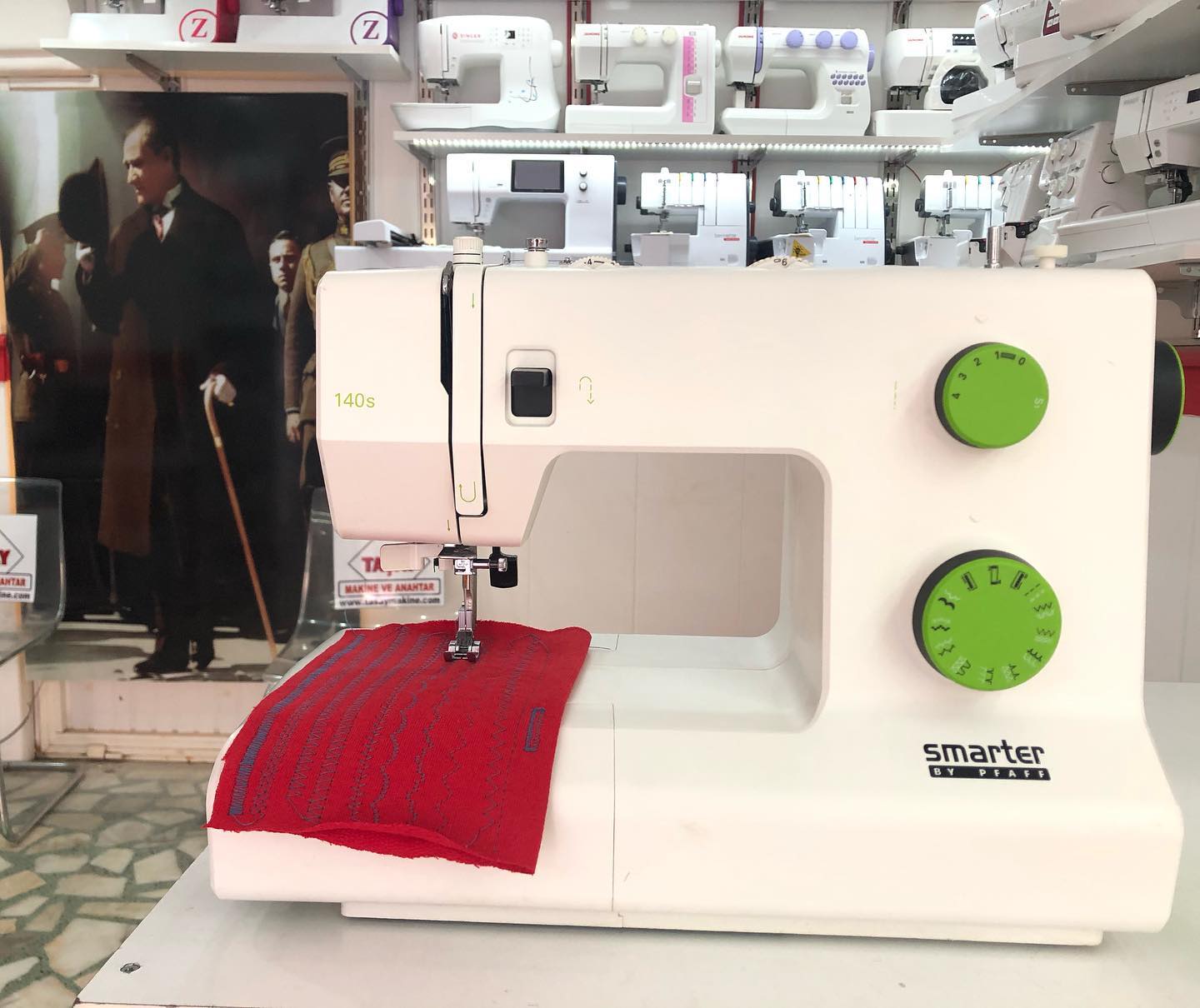 Pfaff Smarter 140s dikiş makinesi dört adımda ilik açma otomatik iplik takma serbest kol paça dikişleri 21 farklı dikiş streç dikiş özelliği sıfır ayarında bakımları yapılmış kendinden çantalı tarafımızdan garantili 21 değişik dikiş ve dekoratif desen