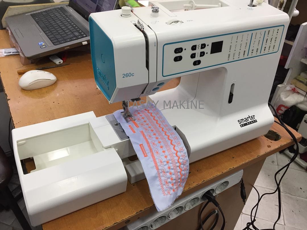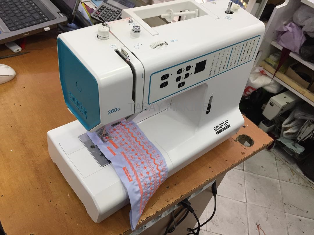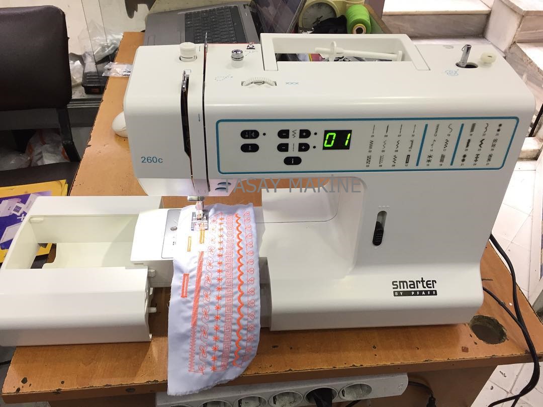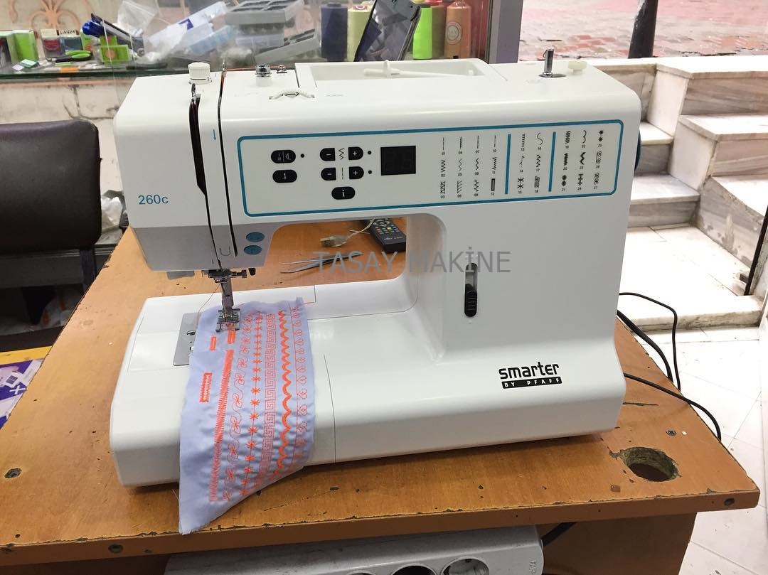 Pfaff 260c dikiş makinesi çift iğne nervür ve s nervür yapabilme kademeli hız ayarı start stop pedalsız çalışma dokunmatik panel otomatik iplik takma tek adımda otomatik ilik açma 7 mm zigzag genişliği tam devir çavanoz kolay masura sarma cıkarılabilir ön panel ile serbest koş ve paça dikişleri 27 farklı dikiş şekli bakımları yapılmış sıfır ayarında çiziksiz tarafımızdan 1 yıl garantili 27 Değişik dikiş ve dekoratif desen