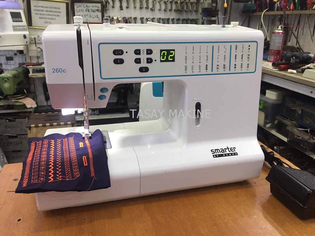 Pfaff 260c dikiş makinesi çift iğne nervür ve s nervür yapabilme kademeli hız ayarı start stop pedalsız çalışma dokunmatik panel otomatik iplik takma tek adımda otomatik ilik açma 7 mm zigzag genişliği tam devir çavanoz kolay masura sarma cıkarılabilir ön panel ile serbest koş ve paça dikişleri 27 farklı dikiş şekli bakımları yapılmış tarafımızdan 1 yıl garantili 27 Değişik dikiş ve dekoratif desen