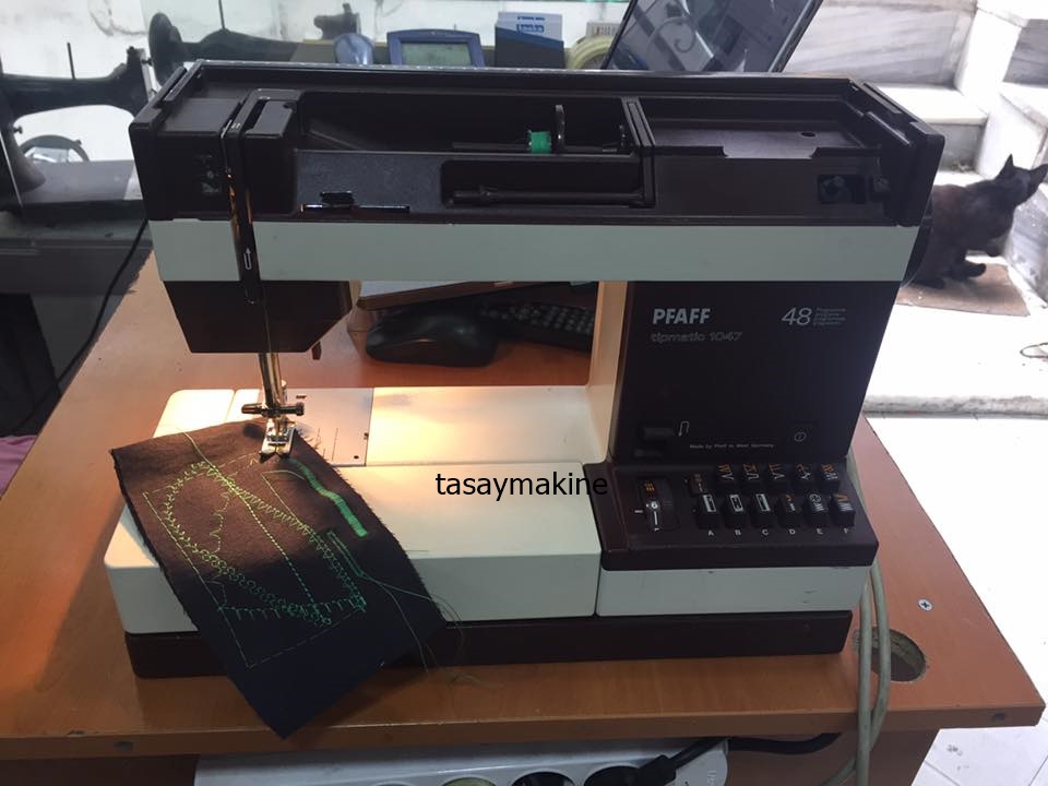 Pfaff Tipmatic 1047 Dikiş Makinası 48 farklı dikiş modeli ilik dahil yapabilmekte çıkabilir ön tabla ile kolay kol ve paça dikişi kolay masura sarma esnek kalın kumaş dikebilme tam devir çavanoz sistemi ev tipi terzilik kaliteli dikiler için tercih edilecek 6 mm adım 6 mm zigzag özelliği ful aksesuarları ile birlikte pfaff 1047 sağlam orjinal alman malı pfaff tipmatic 1047 fiyat