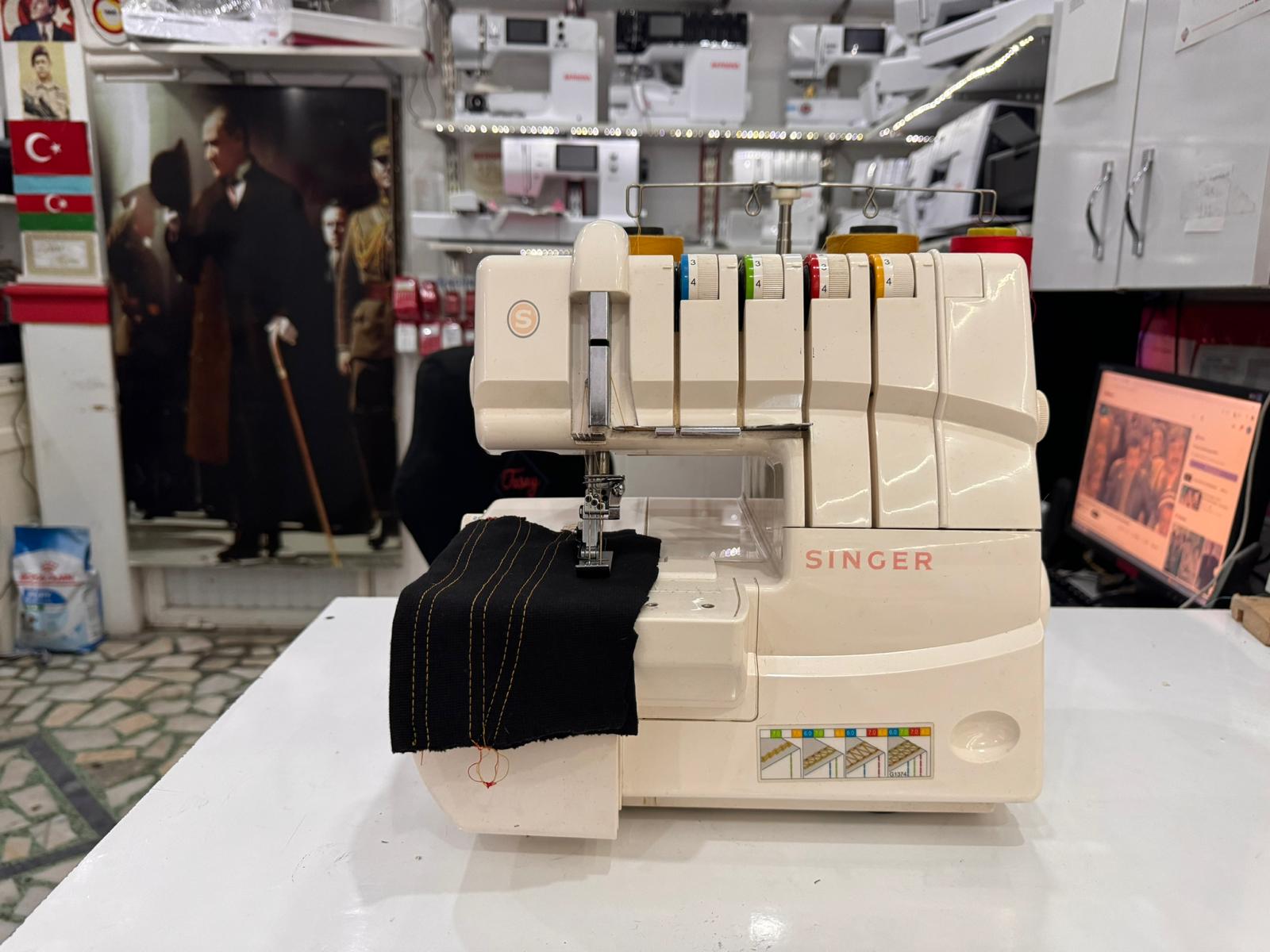 2.EL ÜRÜN SINGER REÇME 14 T 970C 4 İplik Reçme, 4 Değişik Dikiş düz zincir dikiş 3 iğne reçme dikişi 2 iğne dar reçme dikişi 2 iğne geniş reçme dikişi esnek kumaşlarda büzgü defransiyel ayarı ayarlanabilir dikiş adım ayarı ayak baskı sertlik ayarı renkli iplik yolları kolay lüpere iplik takma sistemi masa üstü portatif ev tipi reçme penye dikişleri için ideal atma çıtlamaya son bakımları yapıldı Tasay makine güvencesi ile , Renkli İplik Geçirme Yolları