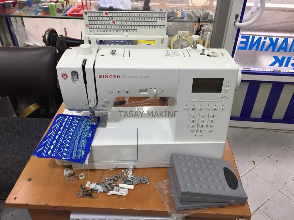 singer quantum l-500 dikiş nakış piko makinesi full aksesuar ayakları onlarca desen ilik düğme 9 mm zigzag piko çekebilmekte lcd ekran 401 farklı işleme desen kendinden iplik çardağı iplik takma otomatik iplik kesme start stop kademeli hız ayarı pedalı çalışabilme saymaktan sıkılabileceğim kadar çok özellikli tam profesionel piko dikiş makinesi uzun yıllar kullanabileceğiniz model ürün gelin çeyizi için alınmış kullanılmamış tam kondisyonlu resimlerde görüldüğü gibidir metal kasa elektronik dikiş makinesi