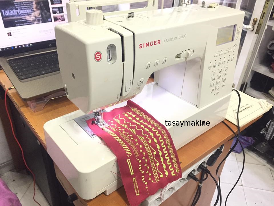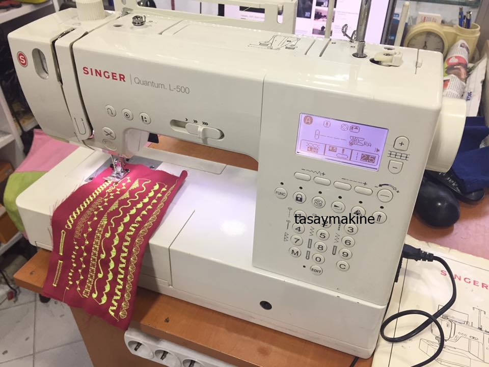 2.el Singer Quantum L-500 dikiş nakış piko makinası 9 MM zigzag genişliği sorunsuz ekstra kumaş destek ayağı vs full aksesuarlı ayakları tam kullanım kılavuzu dahil yanında verilecek sıfırı 02.05.2017 itibari ile 3.300 tl fırsat ürünü sorunsuz sıkıntısız gelip deneyerek satın alabilirsiniz taiwan üretimi singerin üst sekment elektrikli piko makinası tam 401 adet değişik dikiş ve desen ful fonksiyonlı singer l 500 fiyatı gayet makuldur ürün resimlerde görüldüğü gibidir.