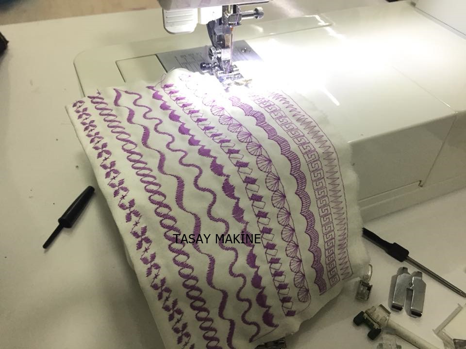 - Kolay değiştirilen ve farklı amaçlara uygun zengin ayak çeşidiyle gizli dikiş, kordonlama, kenar kıvırma, aplike, büzgü gibi teknikleri uygulayabilme