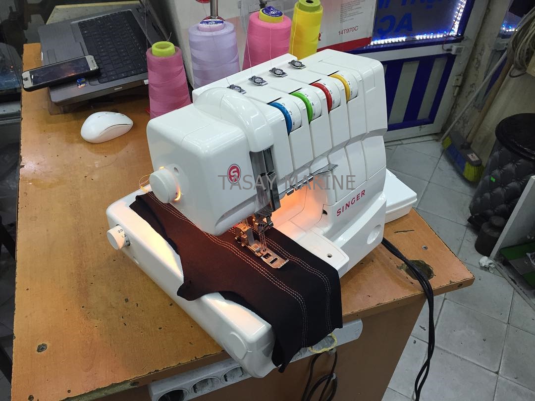 SINGER REÇME 14 T 970C 4 İplik Reçme, 4 Değişik Dikiş düz zincir dikiş 3 iğne reçme dikişi 2 iğne dar reçme dikişi 2 iğne geniş reçme dikişi esnek kumaşlarda büzgü defransiyel ayarı ayarlanabilir dikiş adım ayarı ayak baskı sertlik ayarı renkli iplik yolları kolay lüpere iplik takma sistemi masa üstü portatif ev tipi reçme penye dikişleri için ideal atma çıtlamaya son kutusunda sıfır ayarında aksesuarları ile 5 ay resmi garantisi devam ediyor 1 yıl tarafımızdan garantili. Tasay makine güvencesi ile , Renkli İplik Geçirme Yolları