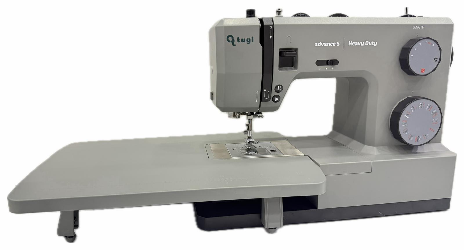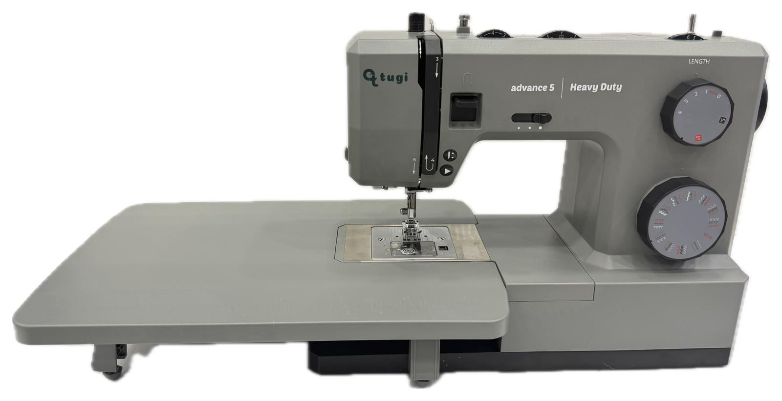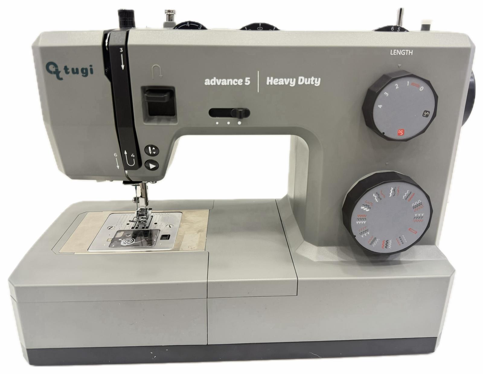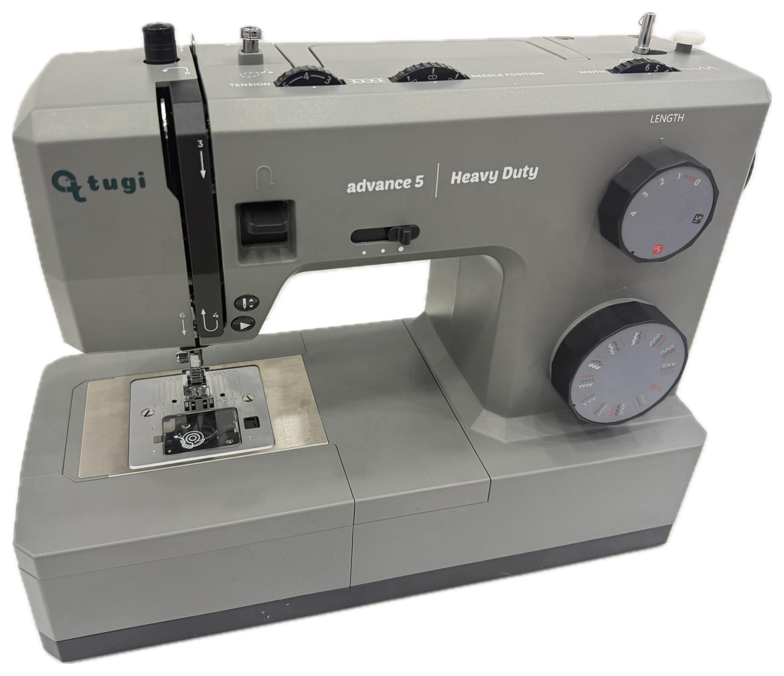 Tugi Advance 5 Dikis Makinesi yarı mekanik yarı elektronik 34 desenli tam devir dikiş makinesi yerli marka tugi başlangıç seviyesi mekanik modelidir. diğer benzer mekanik makinelerden ayıran özelik iğne pozisyonu aşağı yukarı otomatik ayarlanması pedalsız çalışabilme özeliği ve kademeli hız ayarıdır bu sekilde yarı mekanik yarı elektronik özellikli türkiyede ilk modeldir.