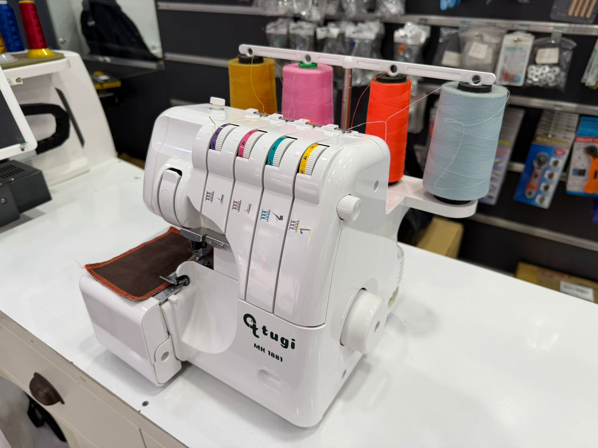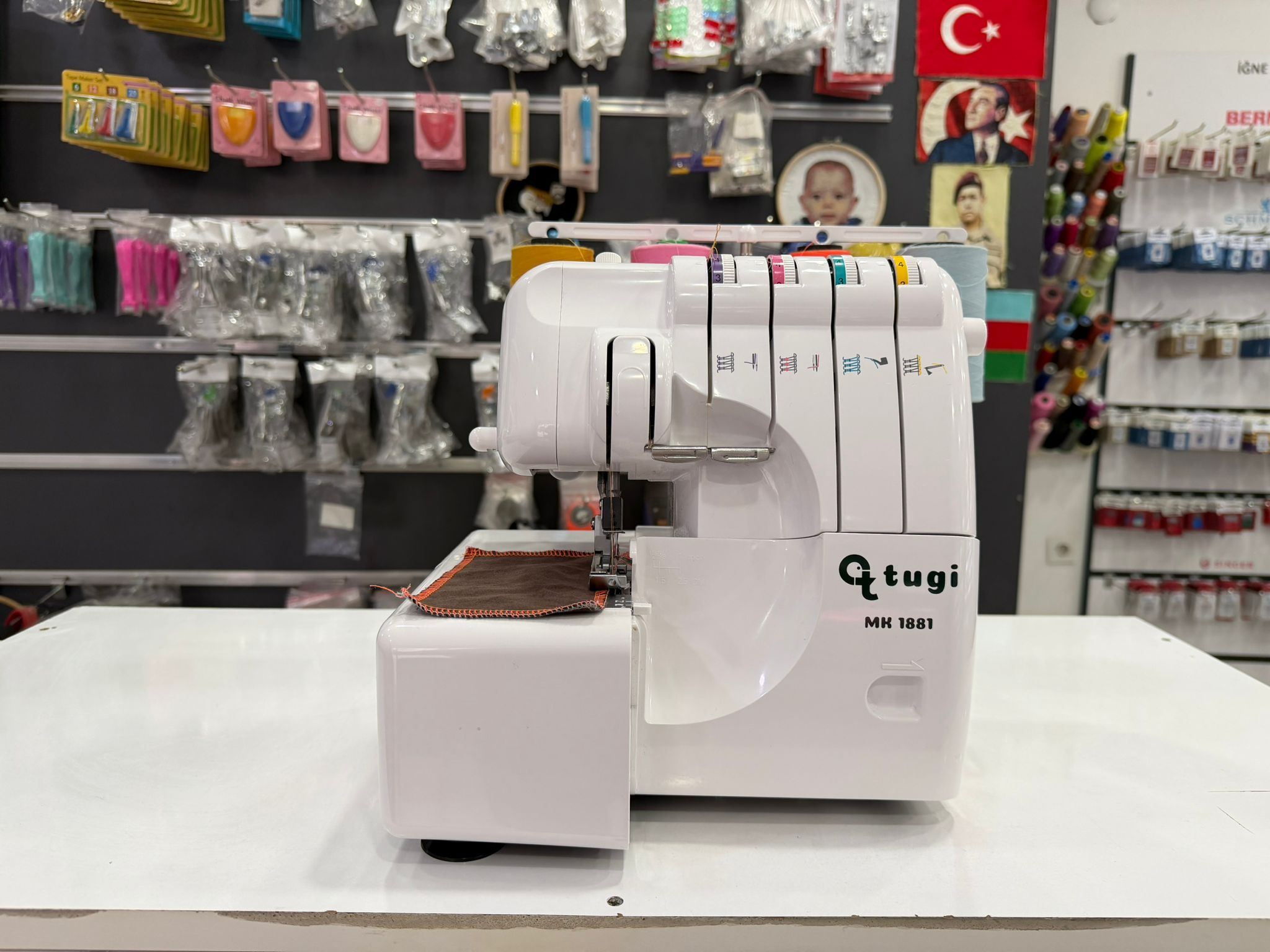 2. EL TUGİ MK1881 Overlok Makinesi ev tipi masa üstü serii ve sessiz kalın ince kumaş esnek penye kumaşlarda üstün çekiş ve dikiş özelliği masa üstü vakumlu bacaklarla daha oturaklı yapı kolay iplik takma kolu. alman malı taiwan üretimi 4 iplik overlok makinesi dilerseniz 3 iplik kullanabilme kolay bıçak iptalı büzgü ve ayarlanabilir dikiş uzunluğu fire kabı ile temiz dikiş bir overlokta arayacağınız her şey mevcut. şık ve modern tasarım opsiyonel ayaklar ile 5 farklı dikiş lastik kordon vb