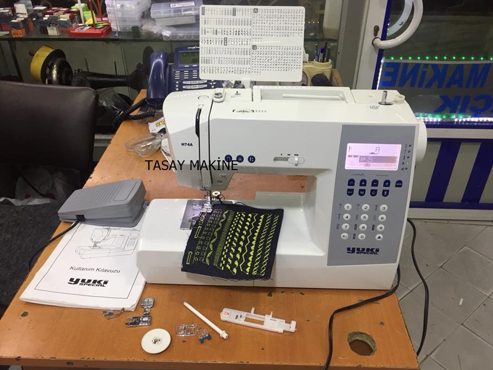 yuki special h74 elektronik dikiş makinesi otomatik iplik takma iplik kesme özelliği aynalama desenleri hariç 310 farklı desen ve piko 2 farklı karakterde 4 hafıza yazı ve rakam yazabilmekte 7 mm zigzag antika dikişleri tam devir kolay masura sarma serbest kol ve paça dikiş dikişlere göre ekranda seçmeniz gereken ayaklar. sıfır ayarında ful aksesuarlı tasaymakine güvencesi ile made in taiwan dünya üzerinde farklı isimlerle satılan yuki h74 a modeli türkiyede zetina z3310 olarak avrupada singer signature modeli olarak satılmakta. sağlamlık ve özellikte dünyada rüştünü ispatlamış. metal iç aksam özellik olarak dolu bir makina sorunsuz ve sıkıntısız.ev dikişleri terzilik hobi dikişleri dışarıya yapılan hazır dikimler vb işler için kaliteli ve alternatif bir ürün arayanlar için idealdir.