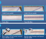 Dikiş genişliği: 6 mm (sol iğne) ve 3.8 mm (sağ iğne) 1-5 mm