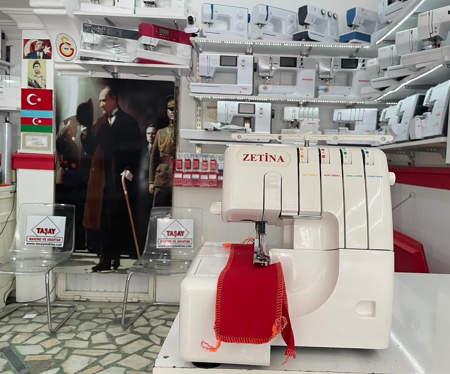 2.el ürün Zetina 700d Overlok Makinesi bakımları yapılmış kutusunda ev tipi masa üstü seri sessiz taiwan üretimi serbest kol paça dikişi kumaş baskı sertlik ayarı esnek kumaş büzgü defransiyel ayarı adım sıklığı iptal edilebilir bıçak ile kesmeden overlok bıçak kesim genişliği ayarlama imkanı dar kenar tülbent bebe overloğu yapabilme renkli iplik yolları sol lüper kolay iplik takma detaylı inceleme youtube kanalımızda