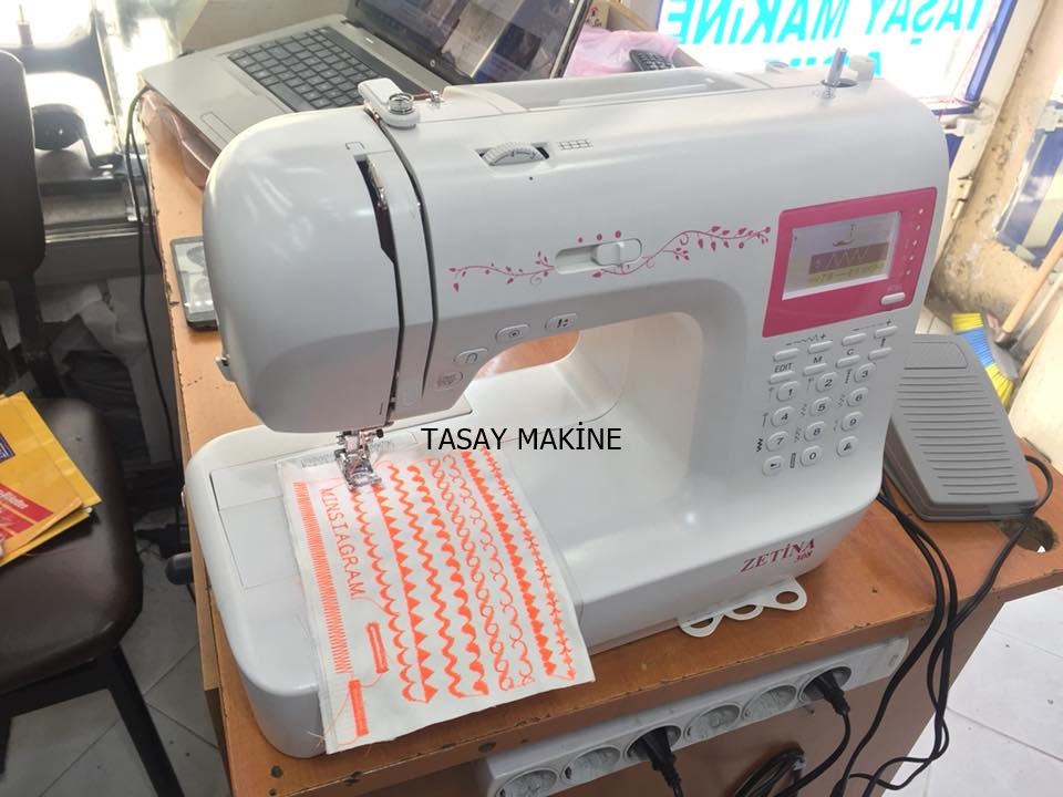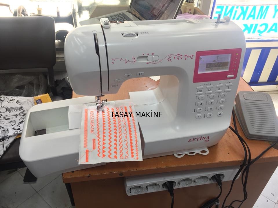 Zetina z308 Dikiş Makinesi 7 mm zigzag piko genişliği tam devir çavanoz sistemi otomtik masura sarma otomatik iplik takma start stop pedalsız çalıştırma 3 kademe hız ayarı aynalama hariç 400 üzerinde değişik dikiş seçeneği 2 farklı karakterde yazı yazabilme 4 farklı hafıza sistemi yazı desen kombini yapabilme sıfır ayarında masa üstü bakımları yapılmış full aksesuarlı kullanım videosu youtube hesabımızda mevcuttur. serbest kol paça dikişi penye kot kumaşlarda sorunsuz dikiş opsiyonel ayaklarla uyumlu sessiz ve seri çalışma imkanı